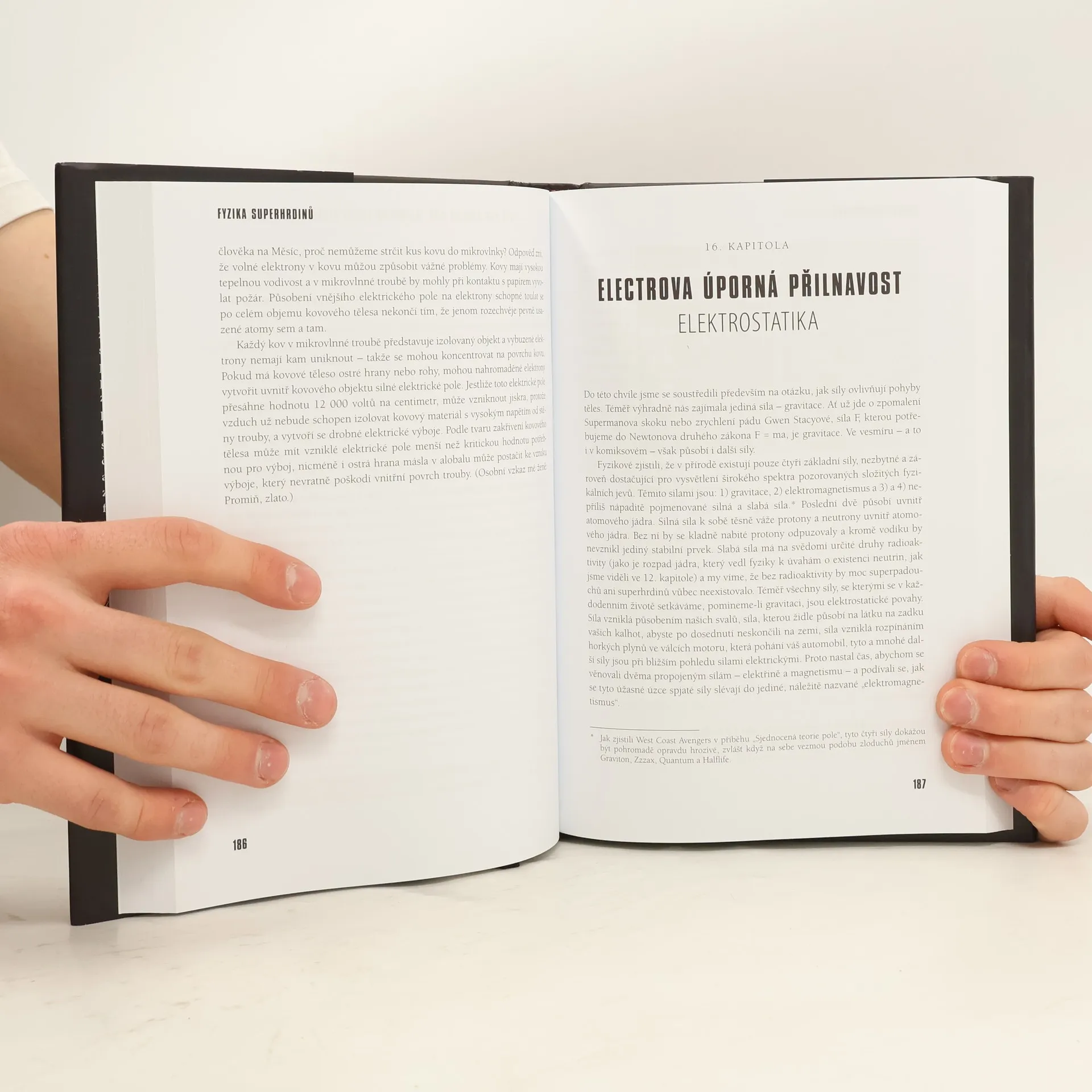 Autor, mj. vysokoškolský učitel fyziky, přistupuje k výuce novátorským způsobem, kdy fyzikální principy od základních zákonů mechaniky po kvantovou fyziku ilustruje na příkladech superhrdinů z komiksů. Zatímco zázračné schopnosti superhrdinů ponechává stranou, zaměřuje se na to, které výkony jsou v souladu s fyzikálními zákony. Tento přístup je zábavný a funkční, neboť čtenář získává nejen přehled o superhrdinském žánru, ale také nenápadnou učebnici fyziky. Autor čerpá ze svého celoživotního zájmu o superhrdinské komiksy a postupně vysvětluje fyzikální poznatky, od jednoduchých mechanických principů po kvantovou mechaniku, vždy v kontextu s konkrétními superhrdiny. Místo kritiky komiksů za fyzikální nesmysly se soustředí na situace, kde jsou fyzikální zákony dodržovány. Jako zkušený učitel dokáže výklad podat srozumitelně a zábavně, propojuje fyzikální jevy s historií klasického komiksu. Na postavách jako Superman a Spider-Man vysvětluje principy od gravitace po kvantovou mechaniku. Fyzika je zde prezentována s pochopením a humorem, i když je v některých případech uchopena špatně. Autor se vyznačuje jasnými a snadno pochopitelnými vysvětleními, což činí text fascinujícím a poučným.