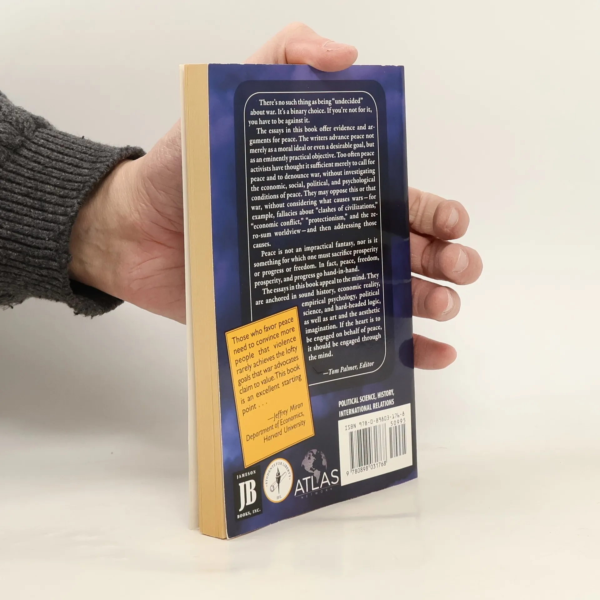 "There is no such thing as being 'undecided' about war. It is a binary choice. If you re not for it, you have to be against it. The essays in this book offer evidence and arguments for peace. The writers advance peace not merely as a moral ideal or even a desirable goal, but as an eminently practical objective. Too often peace activists have thought it sufficient merely to call for peace and to denounce war, without investigating the economic, social, political, and psychological conditions of peace. They may oppose this or that war, without considering what causes wars--for example, fallacies about clashes of civilizations, economic conflict, protectionism, and the zero-sum worldview--and then addressing those causes. Peace is not an impractical fantasy, nor is it something for which one must sacrifice prosperity or progress or freedom. In fact, peace, freedom, prosperity, and progress go hand-in-hand. The essays in this book appeal to the mind. They are anchored in sound history, economic reality, empirical psychology, political science, and hard-headed logic, as well as art and the aesthetic imagination. If the heart is to be engaged on behalf of peace, it should be engaged through the mind."--page 4 of cover.