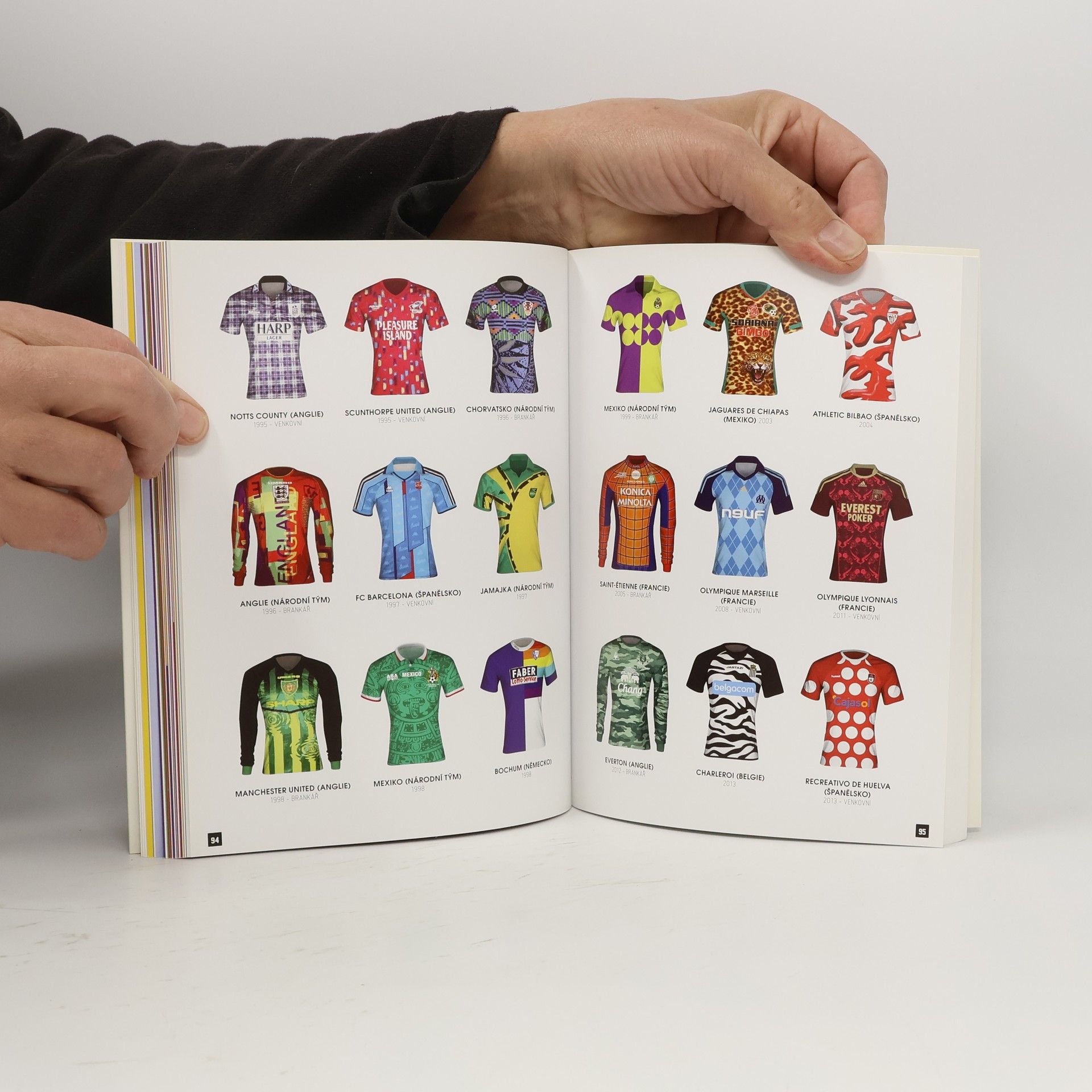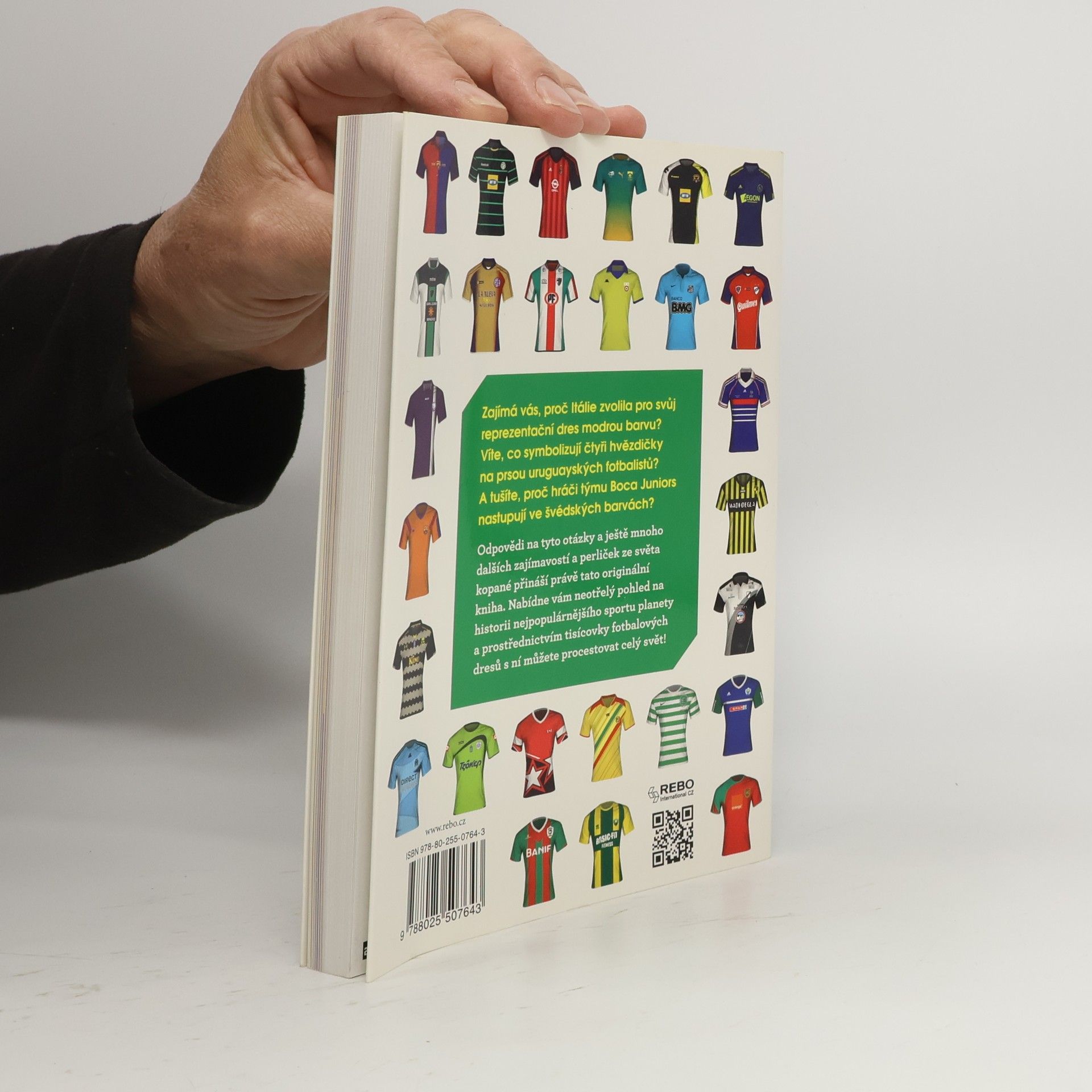 Zajímá vás, proč Itálie zvolila pro svůj reprezentační dres modrou barvu? Víte, co symbolizují čtyři hvězdičky na prsou uruguayských fotbalistů? A tušíte, proč hráči týmu Boca Juniors nastupují ve švédských barvách? Odpovědi na tyto otázky a ještě mnoho dalších zajímavostí a perliček ze světa kopané přináší právě tato originální kniha. Nabídne vám neotřelý pohled na historii nejpopulárnějšího sportu planety a prostřednictvím tisícovky fotbalových dresů s ní můžete procestovat celý svět! •realistické vyvedení aktuálních i historických dresů •v první části knihy jsou národní týmy seřazeny zejména podle úspěchů na mistrovství světa, až poté podle výsledků na ostatních mezinárodních turnajích, pořadí klubů především na základě výsledků v pohárech •v druhé části knihy řazení národních týmů podle pořadí v žebříčku Mezinárodní federace fotbalových historiků a statistiků (IFFHS) •předmluva sběratele dresů, prezidenta fotbalového klubu Montpellier, Louise Nicollina •rejstřík klubů a národních týmů