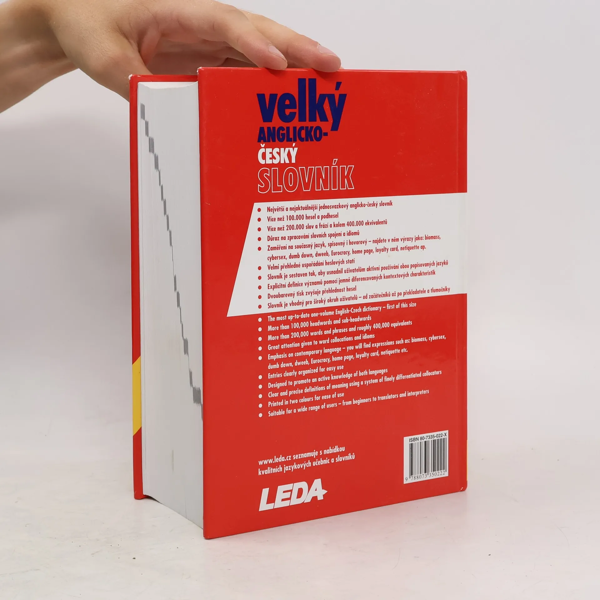 Tento největší a nejaktuálnější jednosvazkový anglicko-český slovník přináší více než 100 000 anglických hesel a podhesel, více než 200 000 anglických slov a frází a více než 400 000 českých ekvivalentů. Větší rozsah tohoto slovníku – přibližně dvojnásobek jeho předchůdce Anglicko-českého slovníku s nejnovějšími výrazy (LEDA, 1996) – dovoluje podat daleko ucelenější popis současného anglického i amerického lexika. Slovník zahrnuje nejnovější slovní zásobu spisovného a hovorového jazyka včetně odborných termínů ze všech základních odvětví. Toto nové zpracování se vyznačuje zcela novou koncepcí lexikografického popisu projevující se jak v makrostruktuře slovníku, tak ve vnitřním členění a popisu hesel. Výsledkem je maximálně uživatelsky přátelský slovník, jehož předností je přístupnost pro velmi širokou uživatelskou obec – od mírných začátečníků až po překladatele a tlumočníky, a to nejen česky, ale i anglicky hovořící.