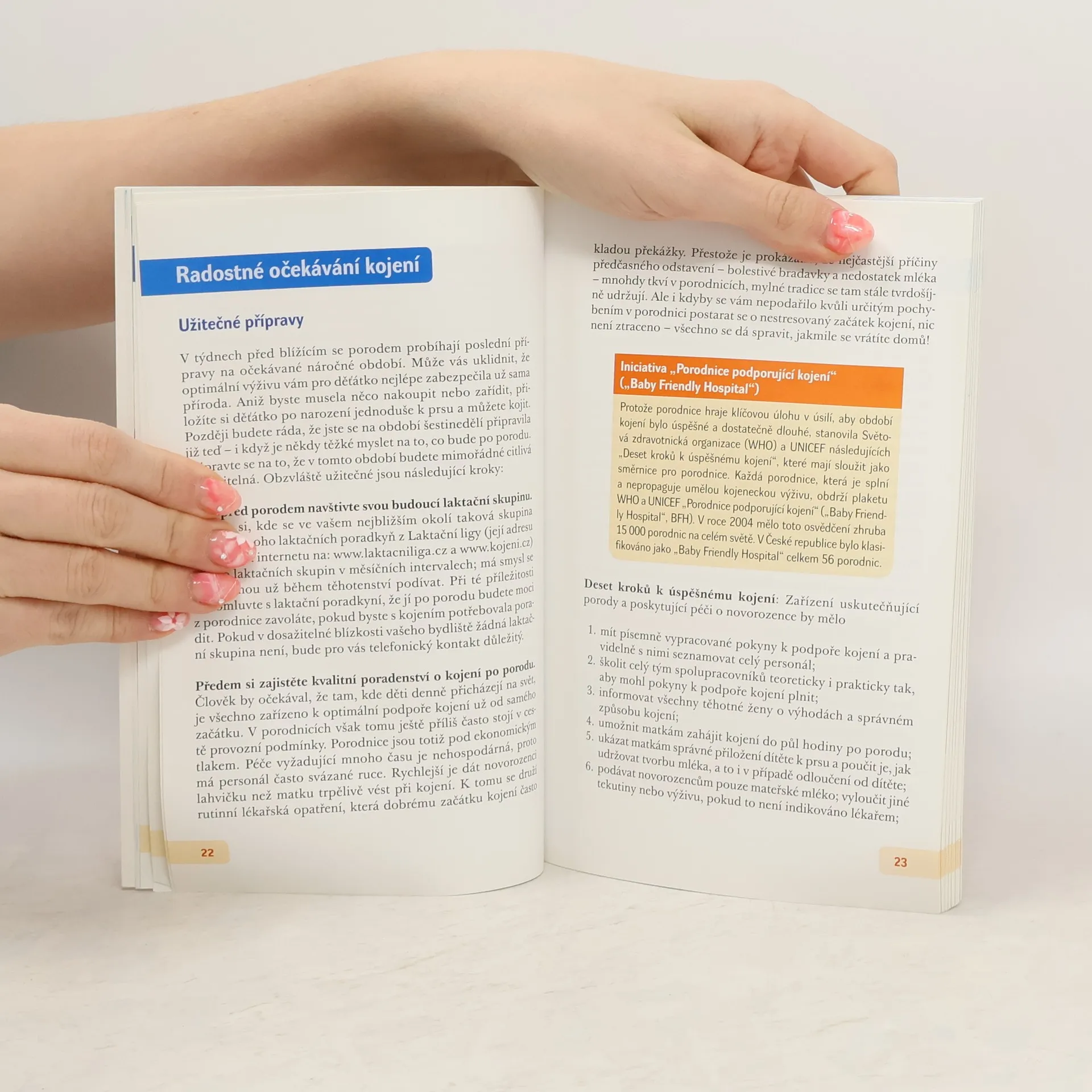 Úvod do praxe kojení zasvěcuje budoucí i čerstvé maminky do jednoho Z nejdůležitějších kontaktů s dítětem. Kniha uvádí do přípravné fáze kojení už před porodem dítěte, připravuje matku na první obtížné okamžiky, kdy se dítě učí „umění“ přijímat mateřské mléko, nabízí různé podněty k masážím prsu a k zacházení s mateřským mlékem a nepomíjí ani různé životní situace, kdy se kojení stává problémem.