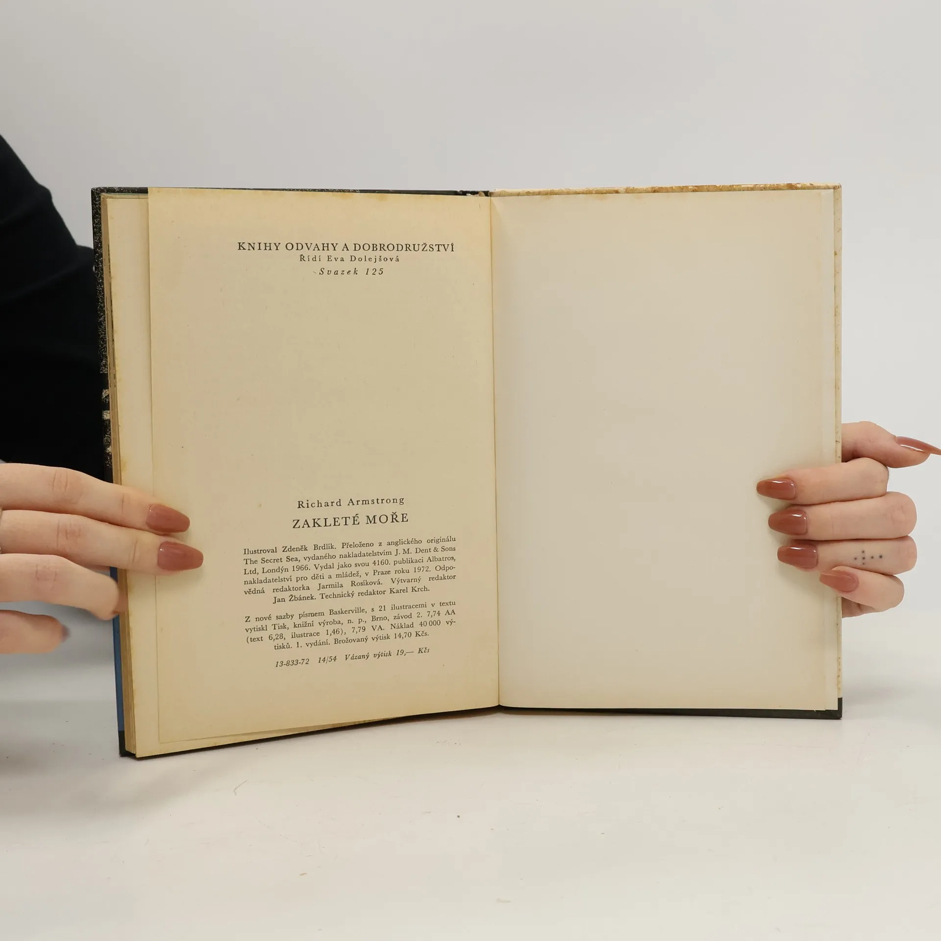 Richard Armstrong ústy svého mladičkého vypravěče předává čtenáři obraz veliké lidské odvahy, dobrodružství, jaké si my suchozemci ani neumíme představit. můžeme si jenom s Thornem, když se houpá na rozbouřeném moři v záchraném člunu, položit otázku: Bylo, či nebylo tajné moře zakleté? 13-833-72