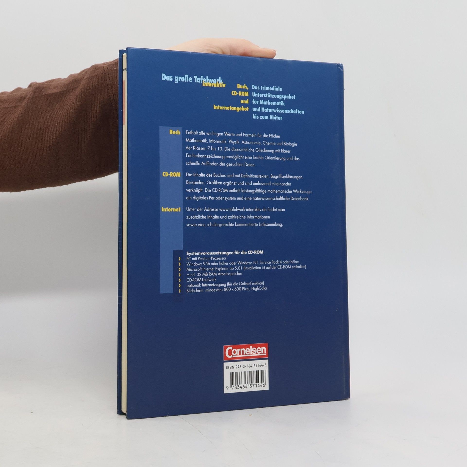 Viel mehr als das digitalisierte Buch: die CD-ROM mit zusätzlichen Definitionstexten, Begriffserklärungen und Beispielen. Durch Links werden Zusammenhänge erkennbar, effektive Suchfunktionen erschließen den Datenbestand. Leistungsfähige verknüpfte Werkzeuge ermöglichen Berechnungen und Darstellungen von Funktionen, Figuren und Körpern. Weitere Highlights: ein digitales Periodensystem und die naturwissenschaftliche Datenbank.