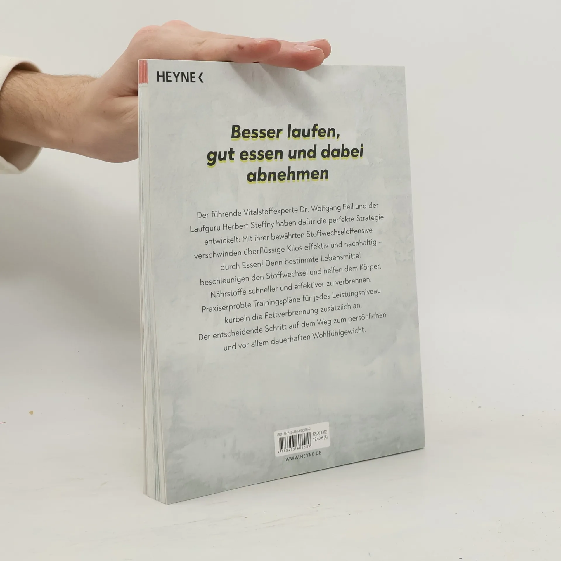 Besser laufen, gut essen und dabei abnehmen: Der führende Vitalstoffexperte Dr. Wolfgang Feil und Laufguru Herbert Steffny haben dafür die perfekte Strategie entwickelt! Mit ihrer bewährten Stoffwechseloffensive verschwinden überflüssige Kilos effektiv und nachhaltig – durch Essen! Denn bestimmte Lebensmittel beschleunigen den Stoffwechsel und helfen dem Körper, Nährstoffe schneller und effektiver zu verbrennen. Praxiserprobte Trainingspläne für jedes Leistungsniveau kurbeln die Fettverbrennung zusätzlich an. Der entscheidende Schritt auf dem Weg zum persönlichen und vor allem dauerhaften Wohlfühlgewicht. Ausstattung: ca. 80 Abbildungen