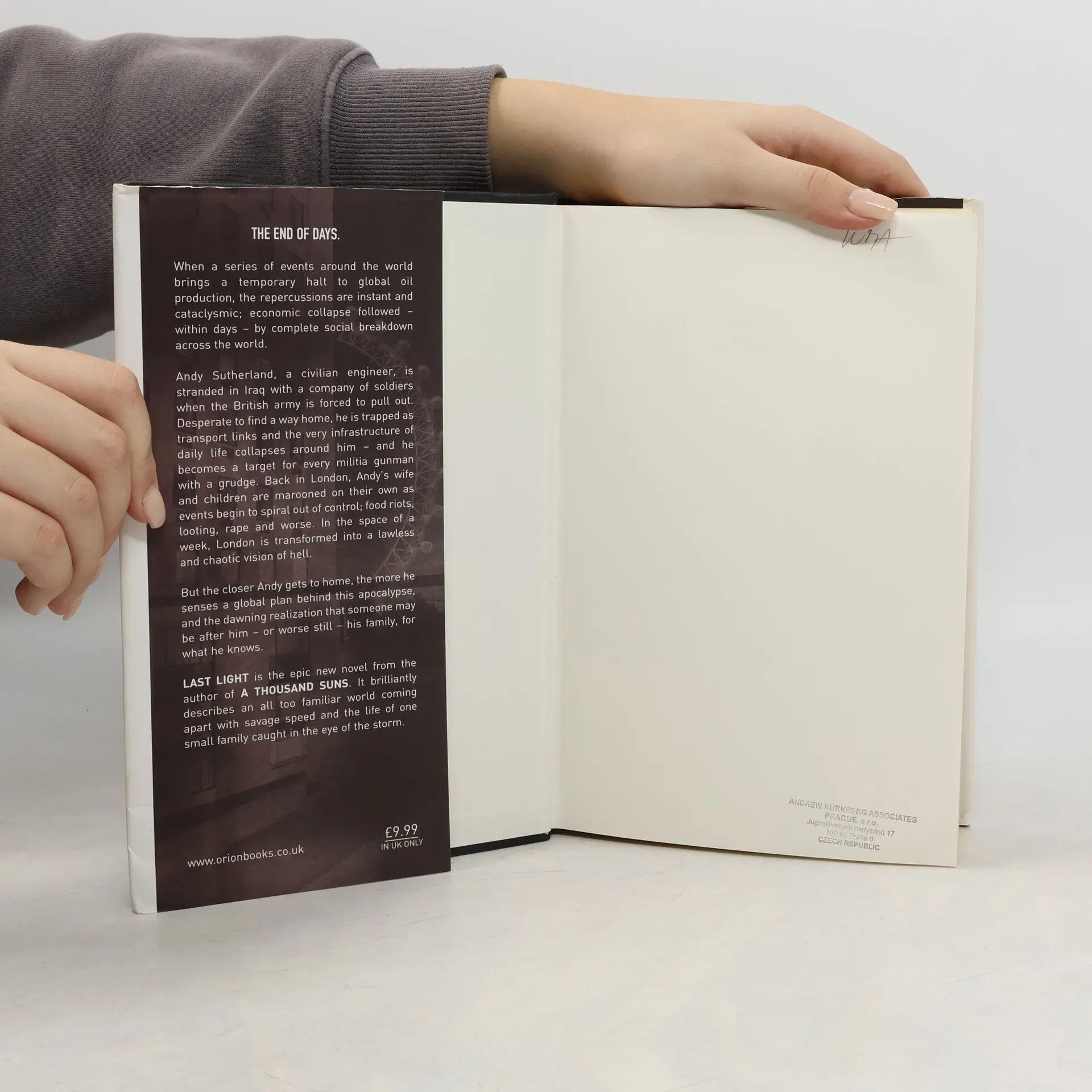 It begins on a very normal Monday morning. But in the space of only a few days, the world's oil supplies have been severed and at a horrifying pace things begin to unravel everywhere. This is no natural disaster; someone is behind this. Oil engineer Andy Sutherland is stranded in Iraq with a company of British soldiers, desperate to find a way home, trapped as the very infrastructure of daily life begins to collapse around him. Back in Britain, his wife Jenny is stuck in Manchester, fighting desperately against the rising chaos to get back to their children; London as events begin to spiral out of control -- riots, raging fires, looting, rape, and murder. In the space of a week, London is transformed into an anarchic vision of hell. Meanwhile, a mysterious man is tracking Andy's family. He'll silence anyone who can reveal the identities of those behind this global disaster. The people with a stranglehold on the future of civilization have flexed their muscles at other significant tipping points in history, and they are prepared to do anything to keep their secret -- and their power -- safe.