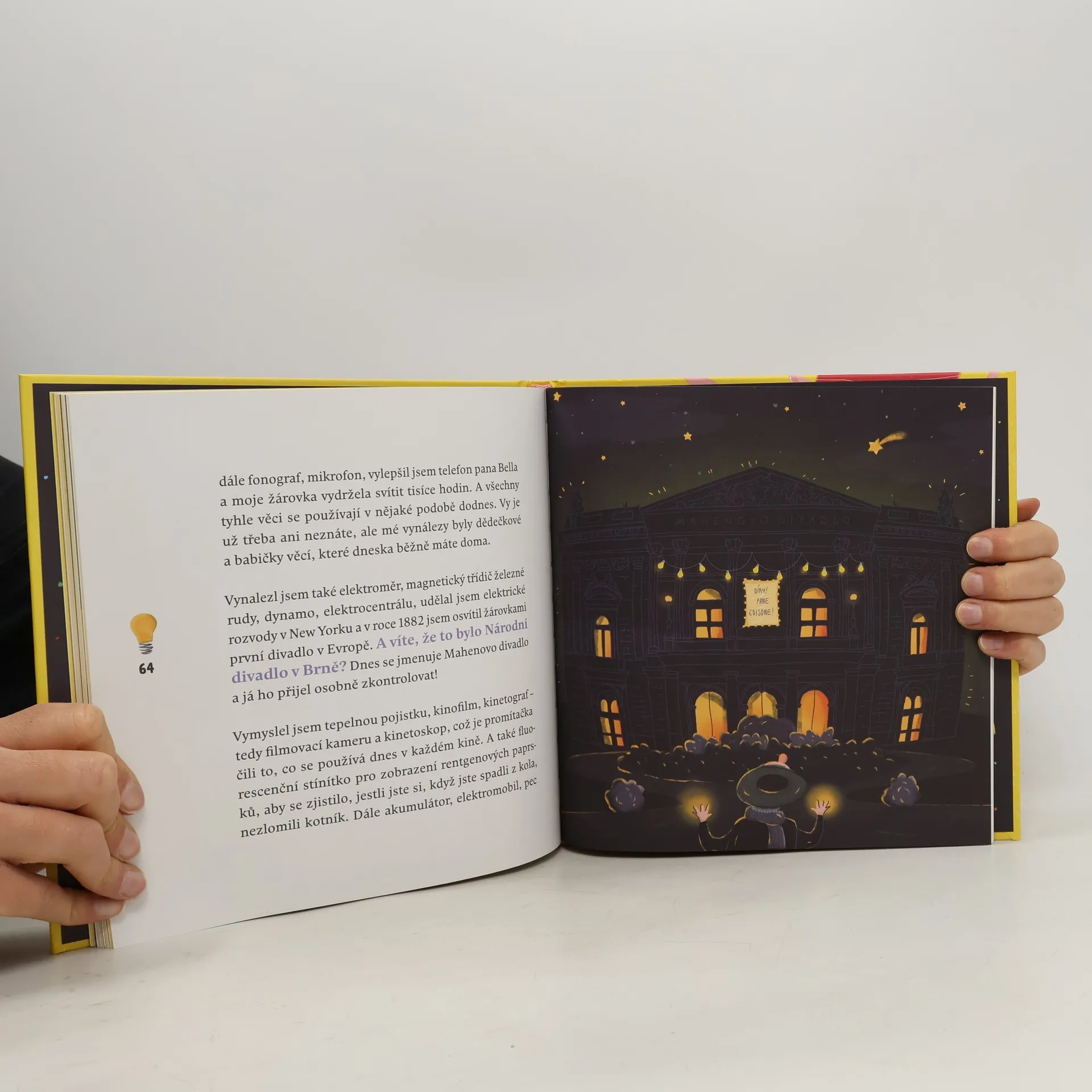 Máte v ruce nebo poblíž sebe mobilní telefon? Trávíte právě čas na svém počítači? Je večer a vy zrovna svítíte? Vše funguje na bázi správného využití elektrické energie s potomky přístrojů, u jejichž zrodu stál Thomas Alva Edison. V knize sám vynálezce vypráví zábavnou formou o svém životě, o pokusech nejen s elektrickým proudem, ale především o píli, vytrvalosti a nadšení, pomocí kterých dokázal velké věci. Buďte na chvíli spolu s dětmi u zrodu jeho vynálezů a inspirujte se jeho příběhem!