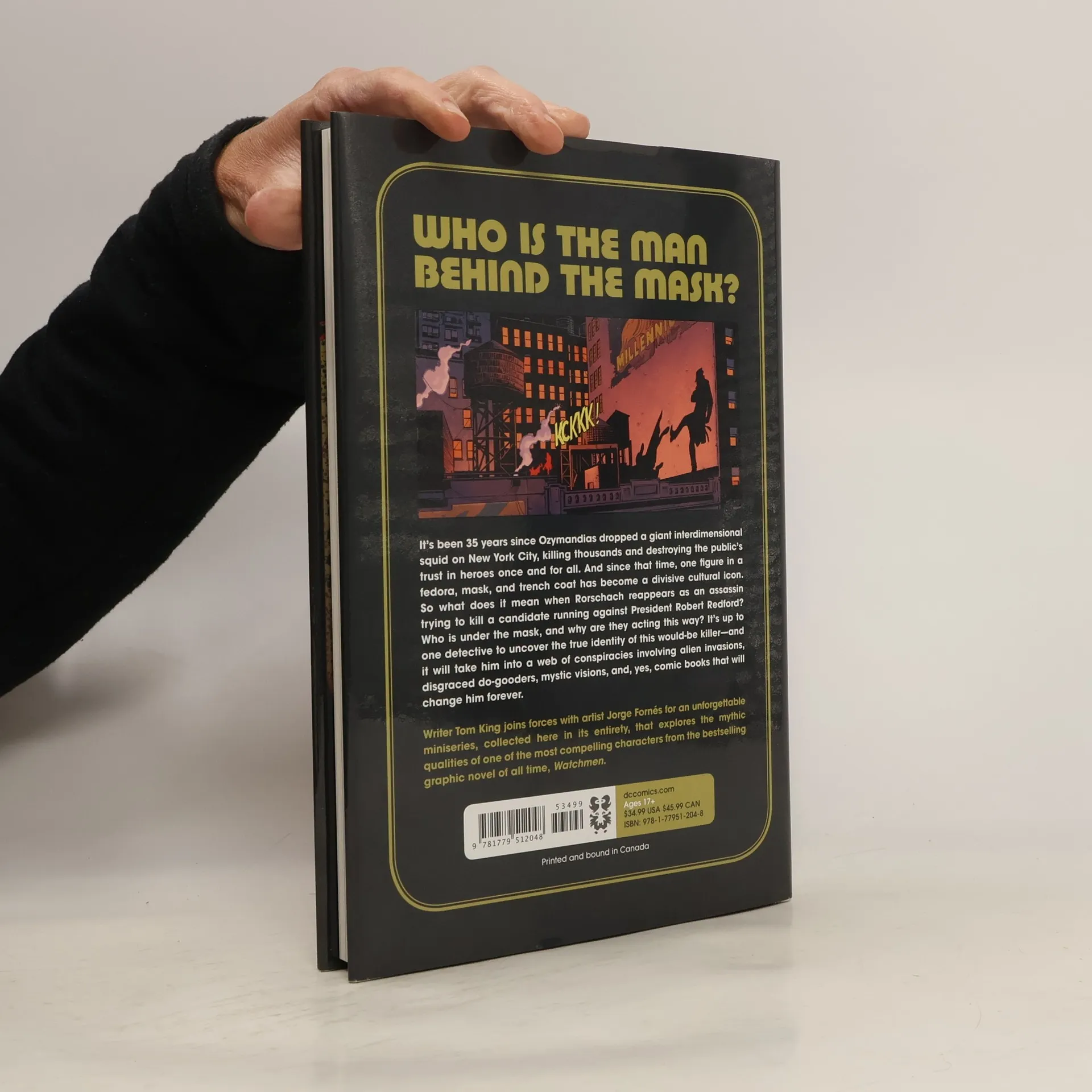 Rorschach is back. Whoever he is. It's been 35 years since Ozymandias dropped a giant interdimensional squid on New York City, killing thousands and destroying the public's trust in heroes once and for all. And since that time, one figure in a fedora, mask, and trench coat has become a divisive cultural icon. So what does it mean when Rorschach reappears as an assassin trying to kill a candidate running against President Robert Redford? Who is the man behind the mask, and why is he acting this way? It's up to one detective to uncover the true identity of this would-be killer--and it will take him into a web of conspiracies involving alien invasions, disgraced do-gooders, mystic visions, and yes, comic books. Writer Tom King joins forces with artist Jorge Fornés for a new miniseries that explores the mythic qualities of one of the most compelling characters from the bestselling graphic novel of all time, Watchmen. Collects Rorschach #1-12.