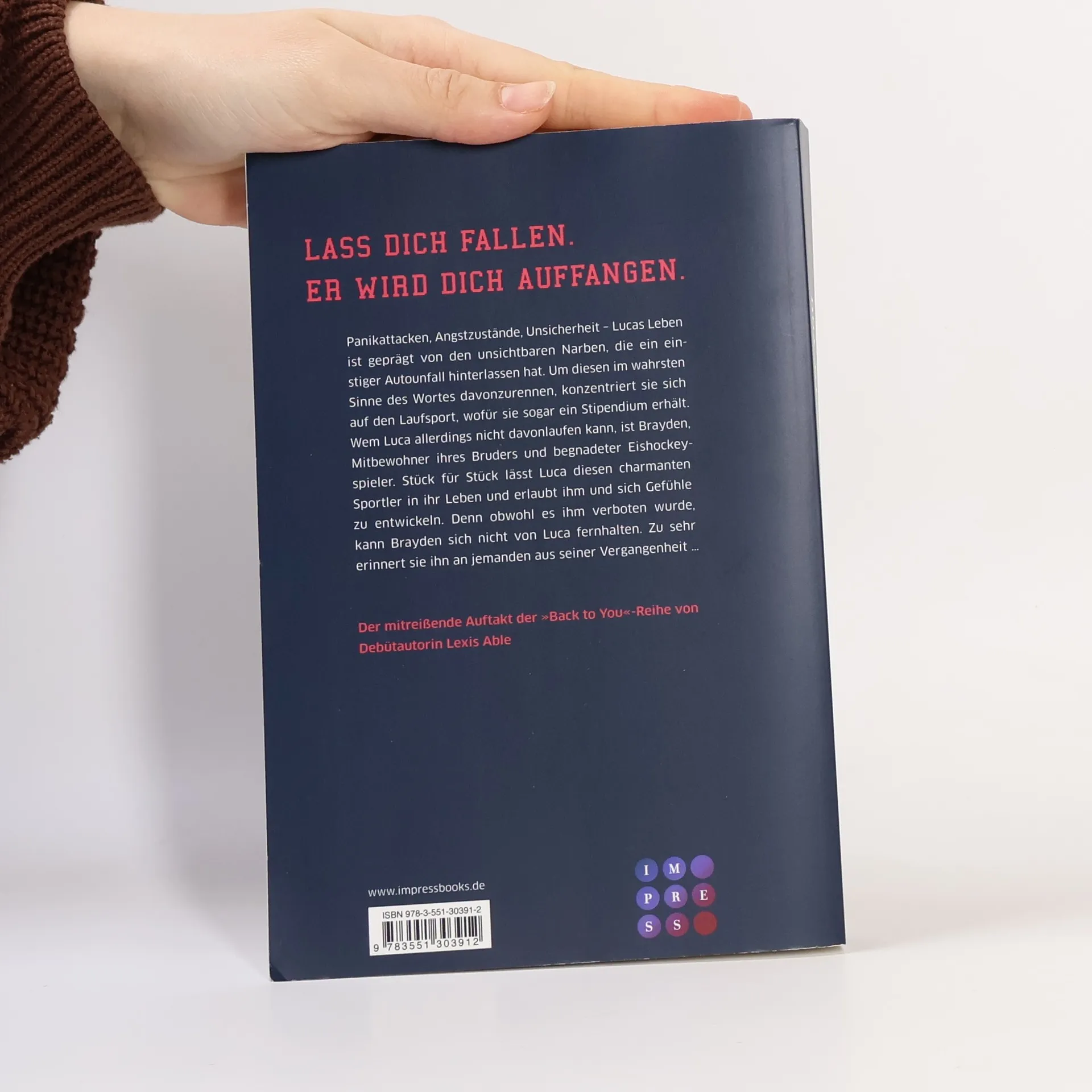 **Lass dich fallen. Er wird dich auffangen.** Panikattacken, Angstzustände, Unsicherheit – Lucas Leben ist geprägt von den unsichtbaren Narben, die ein einstiger Autounfall hinterlassen hat. Um diesen im wahrsten Sinne des Wortes davonzurennen, konzentriert sie sich auf den Laufsport, wofür sie sogar ein Stipendium erhält. Wem Luca allerdings nicht davonlaufen kann, ist Brayden, Mitbewohner ihres Bruders und begnadeter Eishockeyspieler. Stück für Stück lässt Luca diesen charmanten Sportler in ihr Leben und erlaubt ihm und sich Gefühle zu entwickeln. Denn obwohl es ihm verboten wurde, kann Brayden sich nicht von Luca fernhalten. Zu sehr erinnert sie ihn an jemanden aus seiner Vergangenheit ... Gefühlvolle Sports Romance mit Tiefgang zum Dahinschmelzen! //Der Liebesroman »Running Back to You« ist der erste Band der romantischen »Back to You«-Reihe. Alle Bände der gefühlvollen Sports Romance: -- Back to You 1: Running Back to You -- Back to You 2: Crashing Back to You -- Back to You 3: Dreaming Back to You (Juli 2022)//