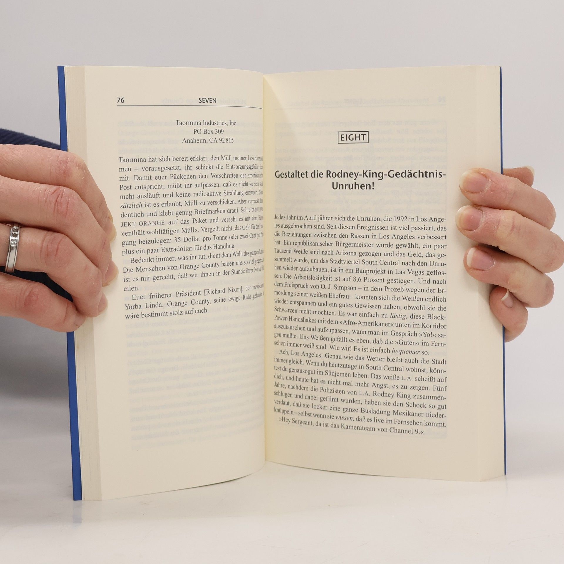 Nach dem Erfolg von Stupid White Men bringt der Piper Verlag Michael Moores Erstling auf den deutschen Markt. Bereits 1989 sorgte der „Sozialarbeiter“ mit seiner Doku Roger & Me für Aufsehen, in der er den Chairman von General Motors mit den sozialen Folgen der Arbeitsplatzverluste in seiner Heimatstadt Flint konfrontierte. Trotz Rekordgewinnen strich GM dort 30.000 Arbeitsplätze, was Moores Wut über diese „Gesundschrumpfung“ und deren Profiteure auslöste. Er erklärt das verhasste Großkonzern-Unwort zur Wurzel allen Übels und nutzt beeindruckende Zahlen und Insiderinformationen. Dabei wird er am Beispiel des Oklahoma-City-Bombers Timothy McVeigh polemisch und benennt die wahren Terroristen im Land. Moore, der mit scharfer Satire arbeitet, vergleicht Republikaner und Demokraten mit einem Restaurant, das nur Hüttenkäse und Knabberstangen anbietet. Er deckt die Wahlkampf-Spenden des erzkonservativen Pat Buchanan auf, die von fragwürdigen Organisationen stammen. Nach dem Sieg der Demokraten 1992 und Clintons Gesundheitsreform erkennt er, dass der Präsident der einzige Amerikaner war, der kostenlos einen Arzt aufsuchen konnte. Hillary Clinton inspiriert ihn zu einer feministischen Liebeserklärung. Moore kritisiert die Zahlungsmoral der Deutschen gegenüber den Überlebenden der Konzentrationslager und zeigt sich als scharfer Beobachter gesellschaftlicher Missstände.