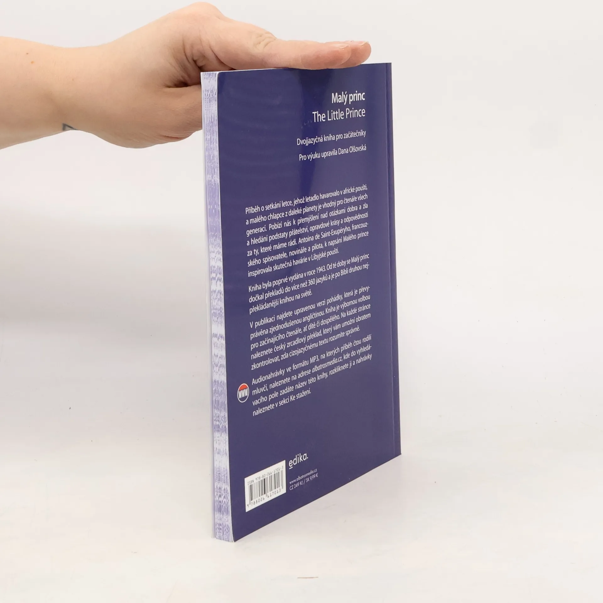 Příběh o setkání letce, jehož letadlo havarovalo v poušti, a malého chlapce z daleké planety je vhodný pro čtenáře všech generací. Pobízí k přemýšlení nad otázkami dobra a zla a hledání podstaty přátelství a odpovědnosti za ty, které máme rádi. V publikaci najdete upravenou verzi pohádky, která je převyprávěna zjednodušenou angličtinou. Kniha je výbornou volbou pro začínajícího čtenáře, ať dítě či dospělého. Audionahrávka ve formátu MP3, na které příběh vypráví rodilý mluvčí, je zdarma ke stažení na webu.
