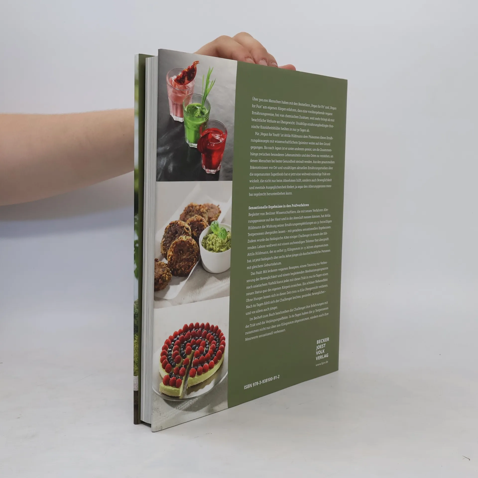 Über 100.000 Menschen haben mit den Bestsellern Vegan for Fit und Vegan for Fun erfahren, dass eine vorübergehende vegane Ernährung ohne chemische Zusätze nicht nur zu Gewichtsverlust führt, sondern auch ernährungsbedingte chronische Krankheiten in nur 30 Tagen heilen kann. In Vegan for Youth hat Attila Hildmann das Phänomen dieser Ernährung mit wissenschaftlichem Ansatz weiter untersucht. Bereits 2015 setzte er die Telomer-Messung ein, eine Methode zur Entschlüsselung des Alterns, die von Nobelpreisträgerin Elizabeth Blackburn entwickelt wurde. Zudem reiste er nach Japan, um die Zusammenhänge zwischen speziellen Lebensmitteln und der Gesundheit von Menschen, die ein hohes Alter erreichen, zu erforschen. Aus seinen Erkenntnissen über Superfoods entwickelte er eine einzigartige Triät, die Alterungsprozesse verlangsamen kann. Gemeinsam mit Wissenschaftlern der Charité in Berlin überprüfte er die Wirkung seiner Ernährungsempfehlungen. Das Ergebnis: Mit schmackhaften veganen Rezepten, einem Beweglichkeitstraining und einem asiatisch inspirierten Meditationsprogramm kann jeder in nur 60 Tagen einen neuen Körperstatus erreichen. Ein positiver Nebeneffekt: In dieser Zeit können bis zu 10 Kilo Übergewicht verloren werden. Nach 60 Tagen fühlen sich die Teilnehmer leichter, gesünder, beweglicher und jünger.