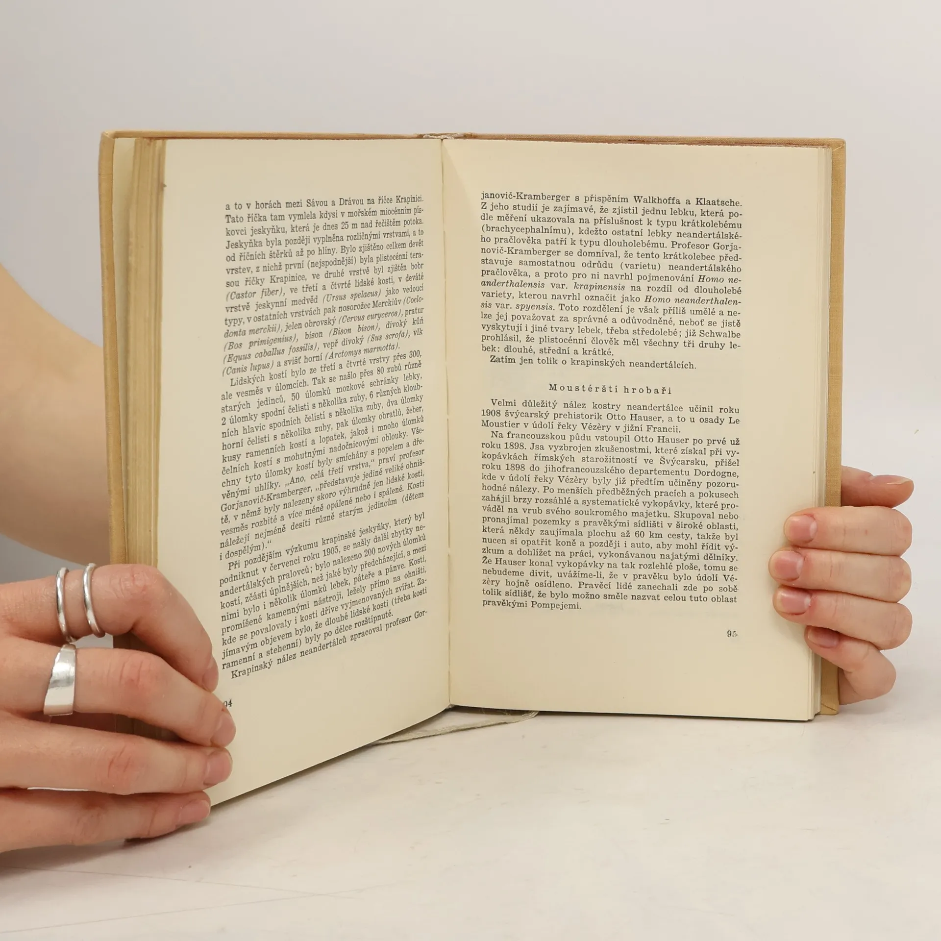 Kniha universitního profesora dr. Josefa Augusty shrnuje nejnovější poznatky o vývoji lidského plemene. Na základě nálezů pozůstatků pravěkých lidí je poutavě vylíčen jejich lovecký život, jejich postupné zdokonalování nástrojů a zbraní, jejich primitivní náboženské kulty a z nich vyplývající způsoby pohřbívání mrtvých. Svůj přístupný výklad dokládá autor mnoha dokumentárními obrazy vykopávek, rekonstrukcemi podoby pračlověka na různém stupni vývoje, které vytvořil ve spolupráci s autorem malíř Zdeněk Burian, a kresbami pravěkých lidí, nalezenými v jeskyních.