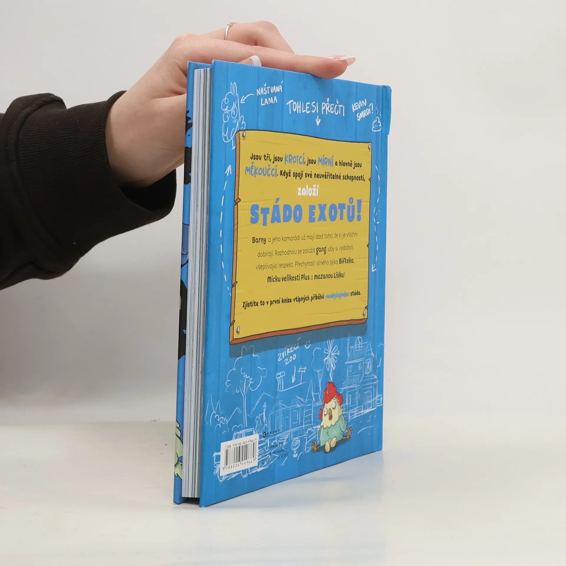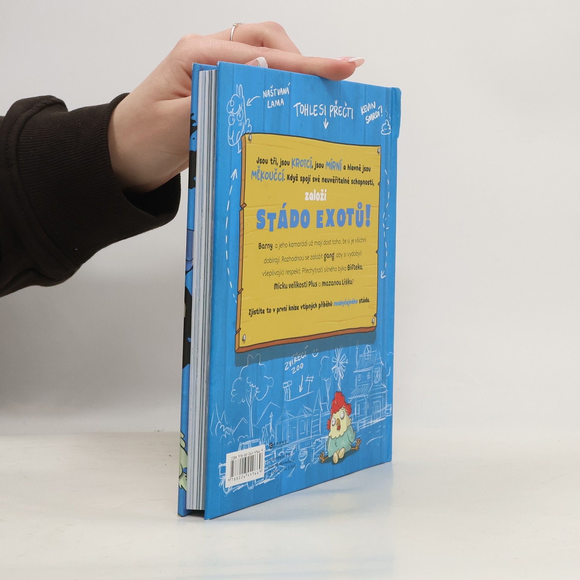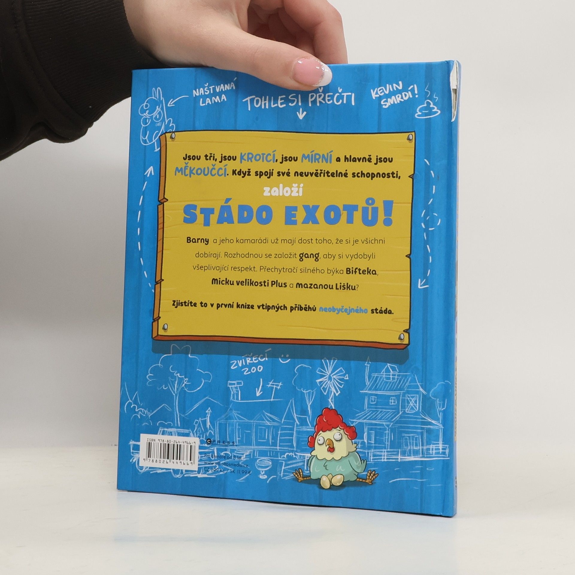 Jsou tři, jsou krotcí, jsou mírní a hlavně jsou měkoučcí. Když spojí své neuvěřitelné schopnosti, založí STÁDO EXOTŮ! Barny a jeho kamarádi už mají dost toho, že si je všichni dobírají. Rozhodnou se založit gang, aby si vydobyli všeplivající respekt. Přechytračí silného býka Bifteka, Micku velikosti Plus a mazanou Lišku? Zjistíte to v první knize vtipných příběhů neobyčejného stáda.