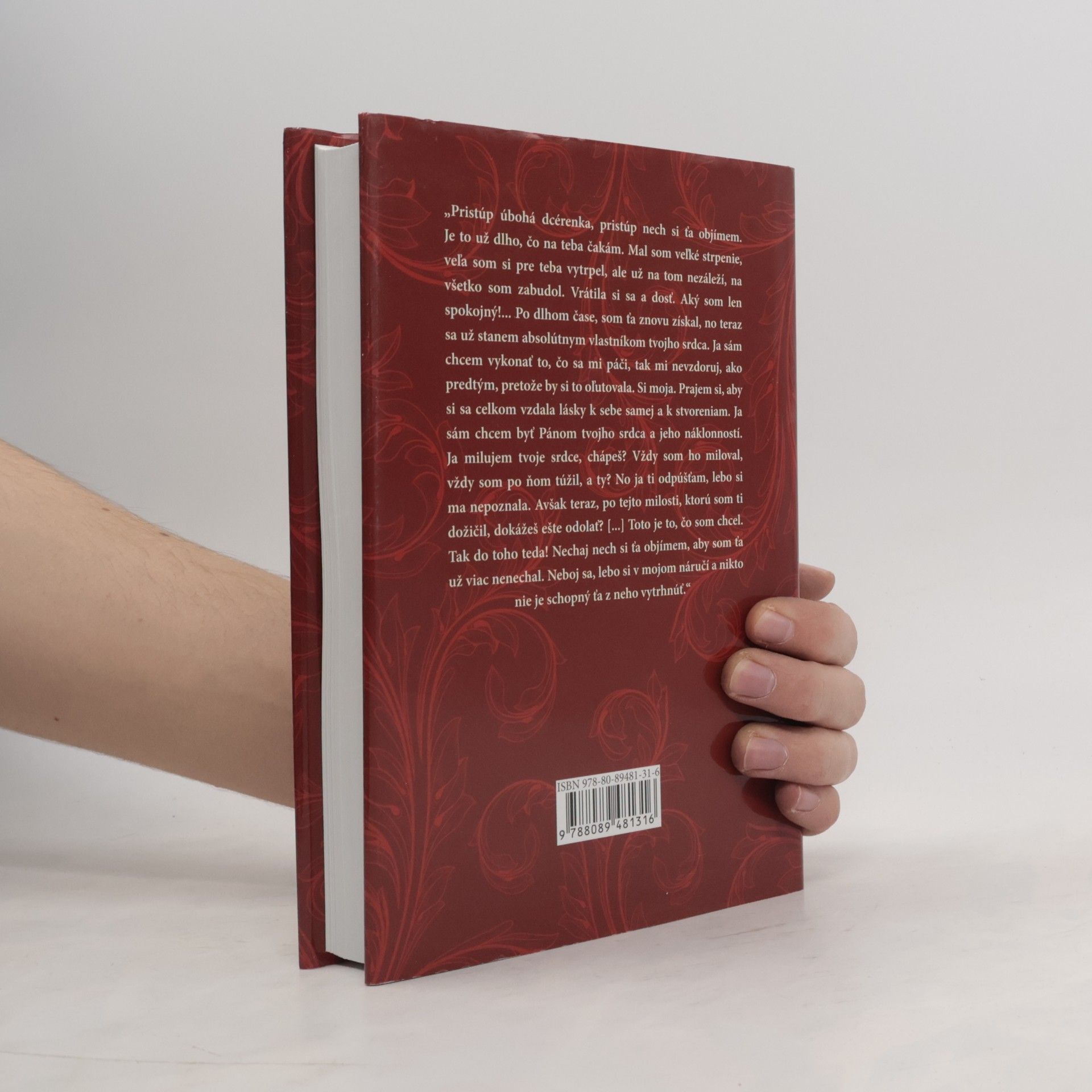 „Pristúp úbohá dcérenka, pristúp nech si ťa objímem. Je to už dlho, čo na teba čakám. Mal som veľké strpenie, veľa som si pre teba vytrpel, ale už na tom nezáleží, na všetko som zabudol. Vrátila si sa a dosť. Aký som len spokojný!… Po dlhom čase, som ťa znovu získal, no teraz sa už stanem absolútnym vlastníkom tvojho srdca. Ja sám chcem vykonať to, čo sa mi páči, tak mi nevzdoruj, ako predtým, pretože by si to oľutovala. Si moja. Prajem si, aby si sa celkom vzdala lásky k sebe samej a k stvoreniam. Ja sám chcem byť Pánom tvojho srdca a jeho náklonností. Ja milujem tvoje srdce, chápeš? Vždy som ho miloval, vždy som po ňom túžil, a ty? No ja ti odpúšťam, lebo si ma nepoznala. Avšak teraz, po tejto milosti, ktorú som ti dožičil, dokážeš ešte odolať? […] Toto je to, čo som chcel. Tak do toho teda! Nechaj nech si ťa objímem, aby som ťa už viac nenechal. Neboj sa, lebo si v mojom náručí a nikto nie je schopný ťa z neho vytrhnúť.“