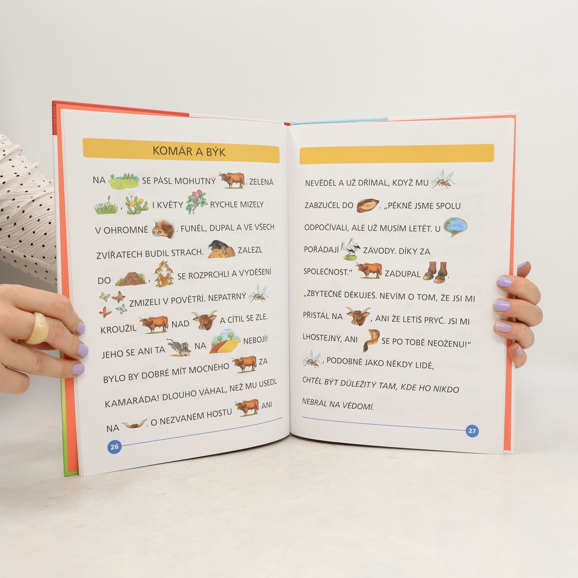 Máte doma předškoláka nebo začínajícího čtenáře? Zasmějte se spolu s ním veselým bajkám a rozvíjejte jeho vnímání. Krásné obrázky, které nahrazují slova v textu, udrží jeho pozornost a čtení se stane zábavou. Dítě se může aktivně zapojit a „číst“ pomocí obrázků. Naučí se tak sledovat text a seznámí se s velkými písmeny abecedy. Kniha je vhodná také pro prvňáčky, kteří se učí číst genetickou metodou.