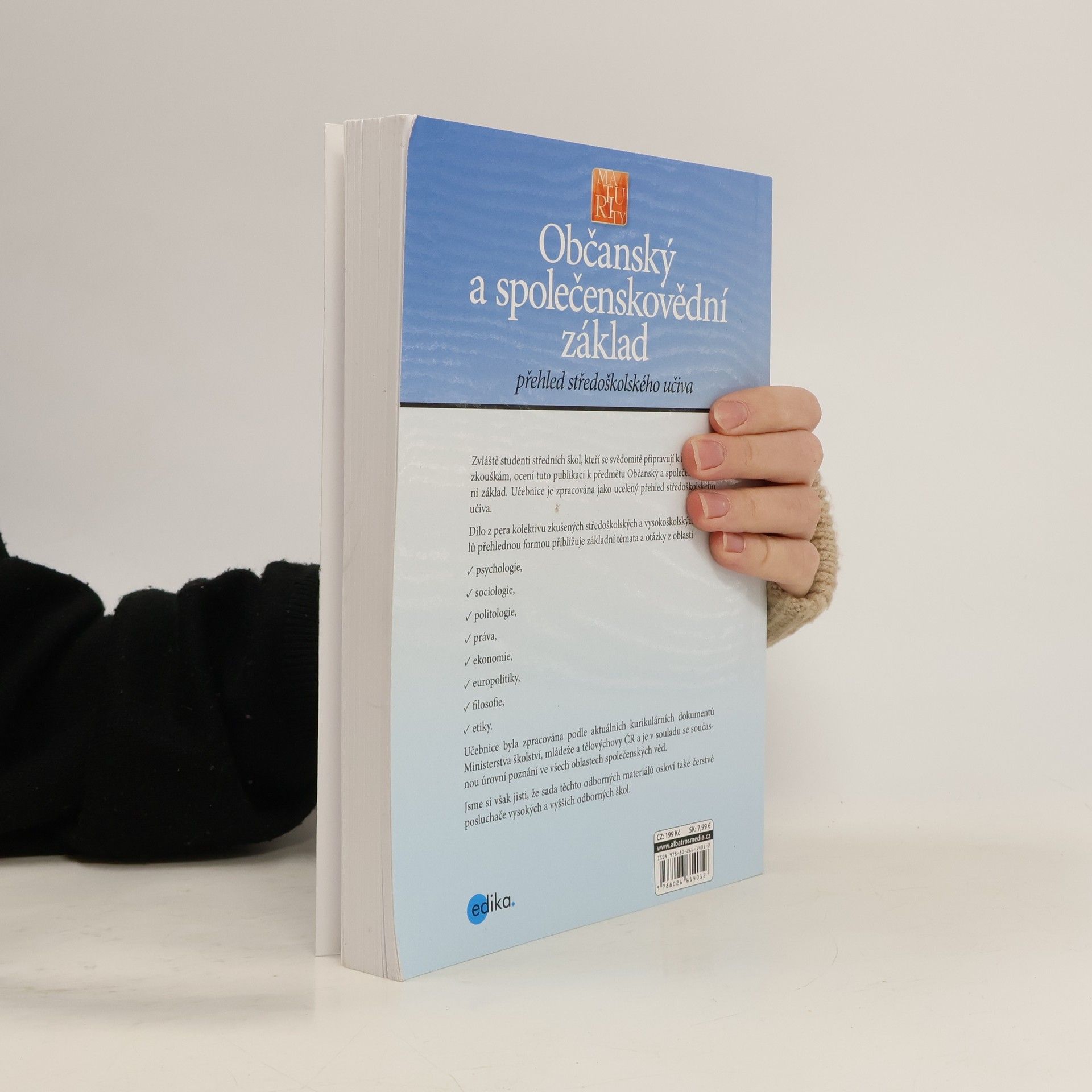 Především středoškolským studentům připravujícím se k maturitě z předmětu Občanský a společenskovědní základ určitě přijde vhod tato publikace, která je zpracována jako moderní a ucelený přehled středoškolského učiva z oblasti psychologie, sociologie, politologie, práva, ekonomie, filosofie a europolitiky. Publikace určitě najde oblibu i mezi čerstvými posluchači vysokých a vyšších škol, pro které poslouží například jako sada odborných materiálů pro opakování základů jednotlivých oblastí.