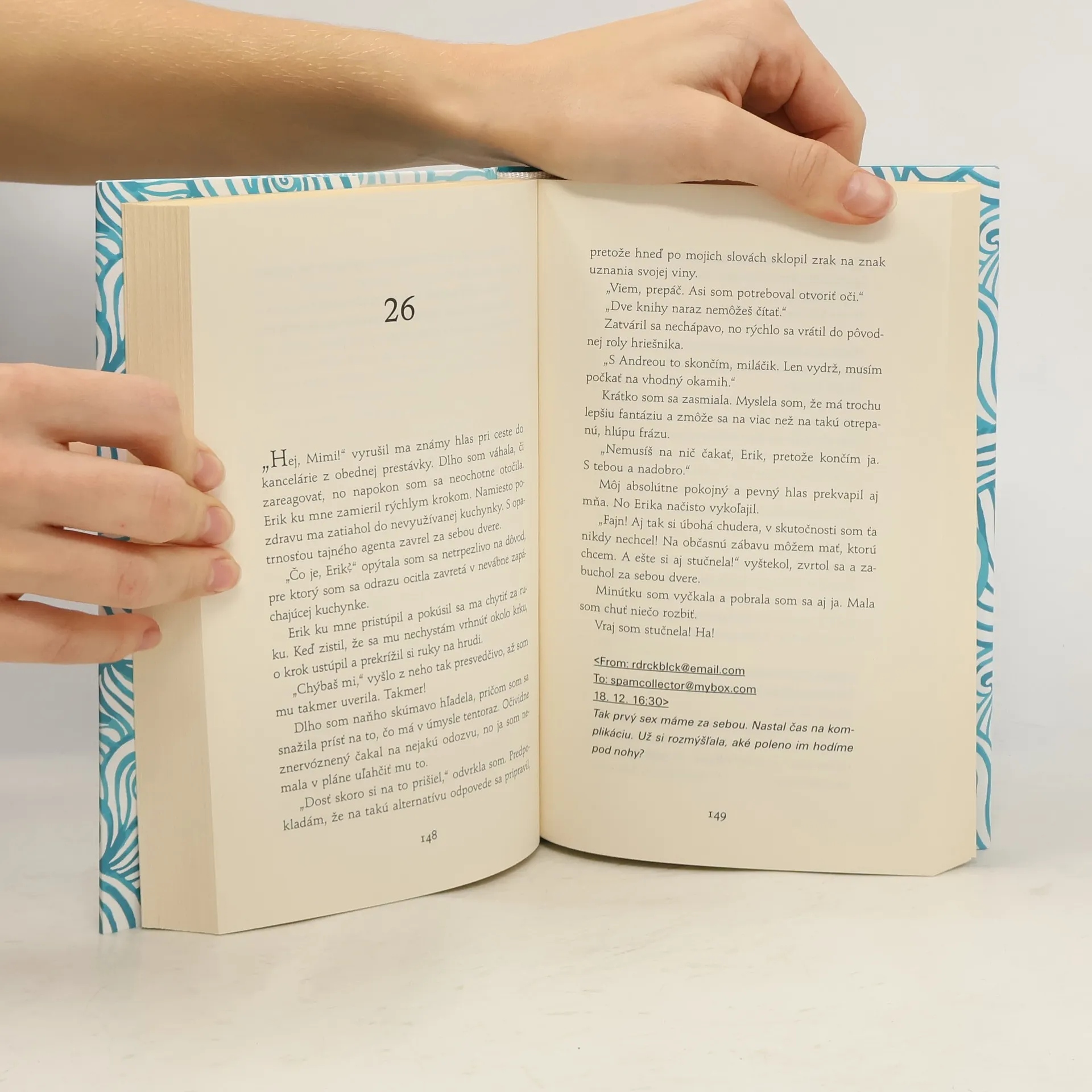 Čas vraj všetko vyrieši… alebo zamotá? Miriam má dvadsaťšesť rokov a užíva si život mladej zamestnanej ženy bez záväzkov. Vrúcne, ozajstne miluje iba svoju rebelku babi a čudného psa, ktorý sa k nej pridal na ulici. Jediným jej nepriateľom je čas, ktorý jej pripomína, čo všetko už nedobehne a nevráti. Miriam sa rozhodne pre zmenu, lenže práve vtedy utrpí bolestnú porážku – zomiera jej opora babi. Útechu nachádza v mailovej schránke, na bezpečnej pôde rozhovorov s náhodným neznámym. Ich čoraz osobnejší vzťah skomplikujú tučniaky, obézni domáci miláčikovia a jeden príbeh dvoch autorov, ktorý nemal mať nič spoločné s realitou…