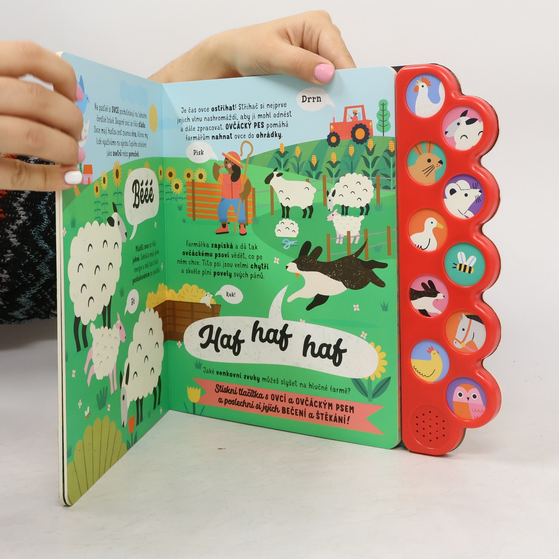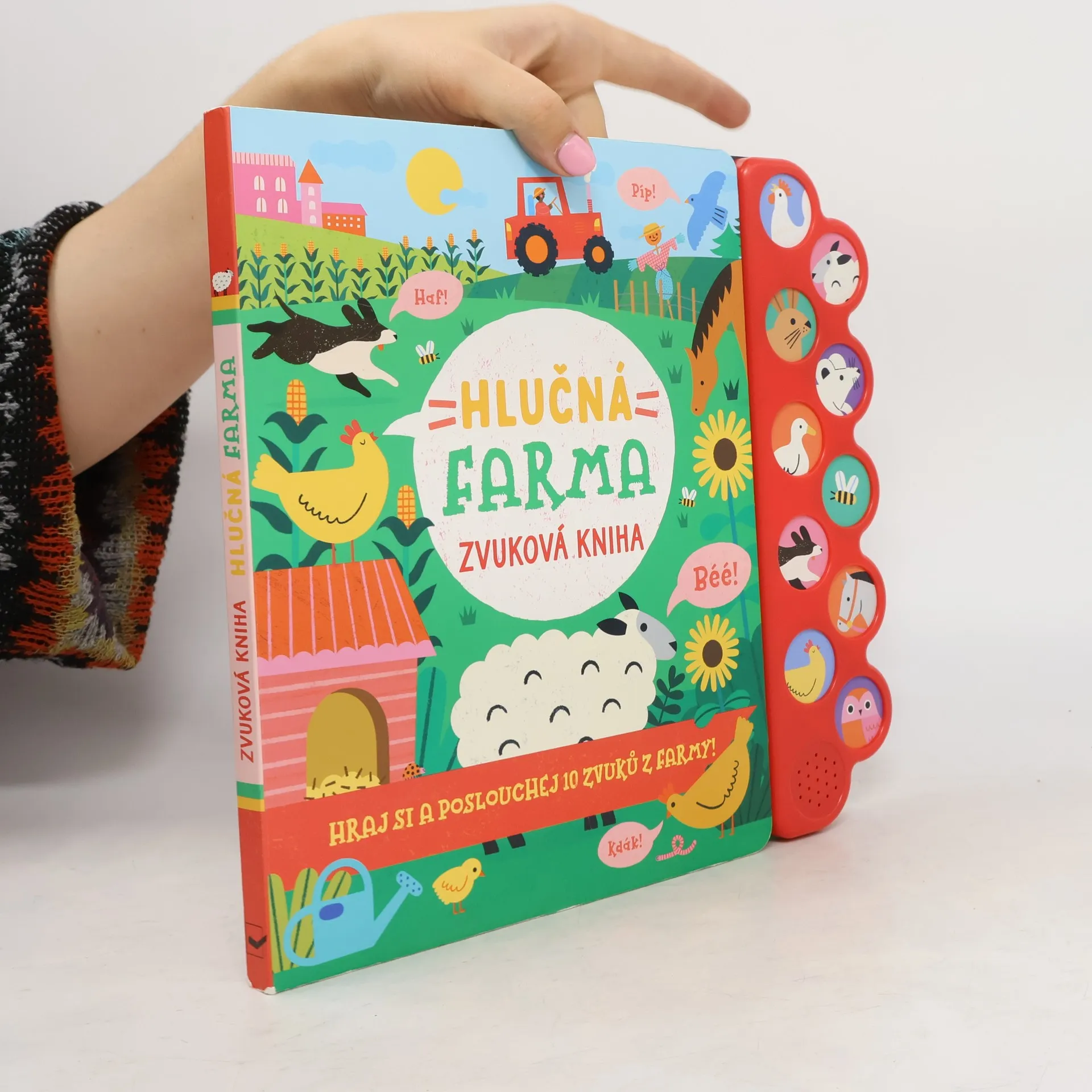 Co všechno uslyšíš na farmě? Užij si den na statku plný nejrůznějších zvuků. Jaká zvířata tam objevíš? Znáš jejich názvy a víš, jaké zvuky vydávají? Zažij zábavný den na farmě s touto knihou plnou nejrůznějších zvuků! Zjisti, jak to na farmě chodí, jaká zvířata tam žijí a jaké zvuky vydávají. Díky 10 tlačítkům se zvuky se budeš při prohlížení této pestrobarevné knihy skvěle bavit! Schválně, co všechno na farmě uslyšíš?!