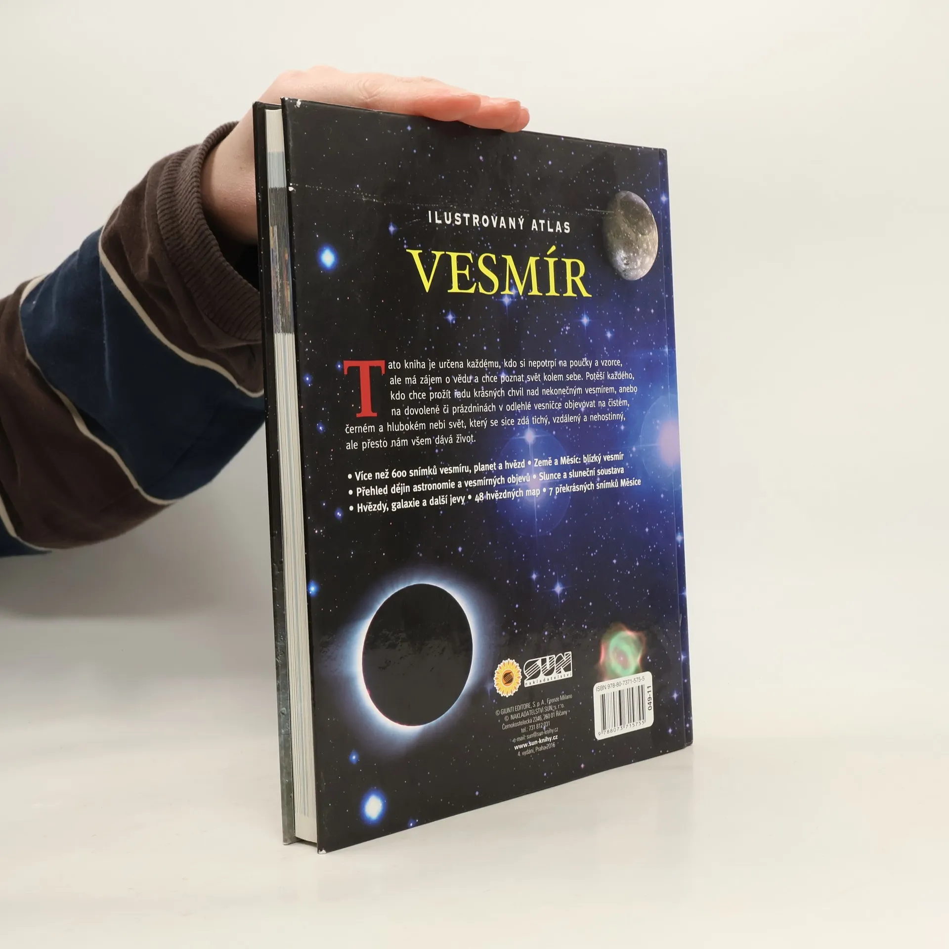 Tato kniha je určena každému, kdo si nepotrpí na poučky a vzorce, ale má zájem o vědu a chce poznat svět kolem sebe. Více než 600 snímků vesmíru, planet a hvězd Země a Měscíe - blízký vesmír. Přehled dějin astronomie a vesmírných objevů, Slunce a sluneční soustava, Hvězdy, galaxie a další jevy, 48 hvězdných map, 7 překrásných snímků Měsíce.