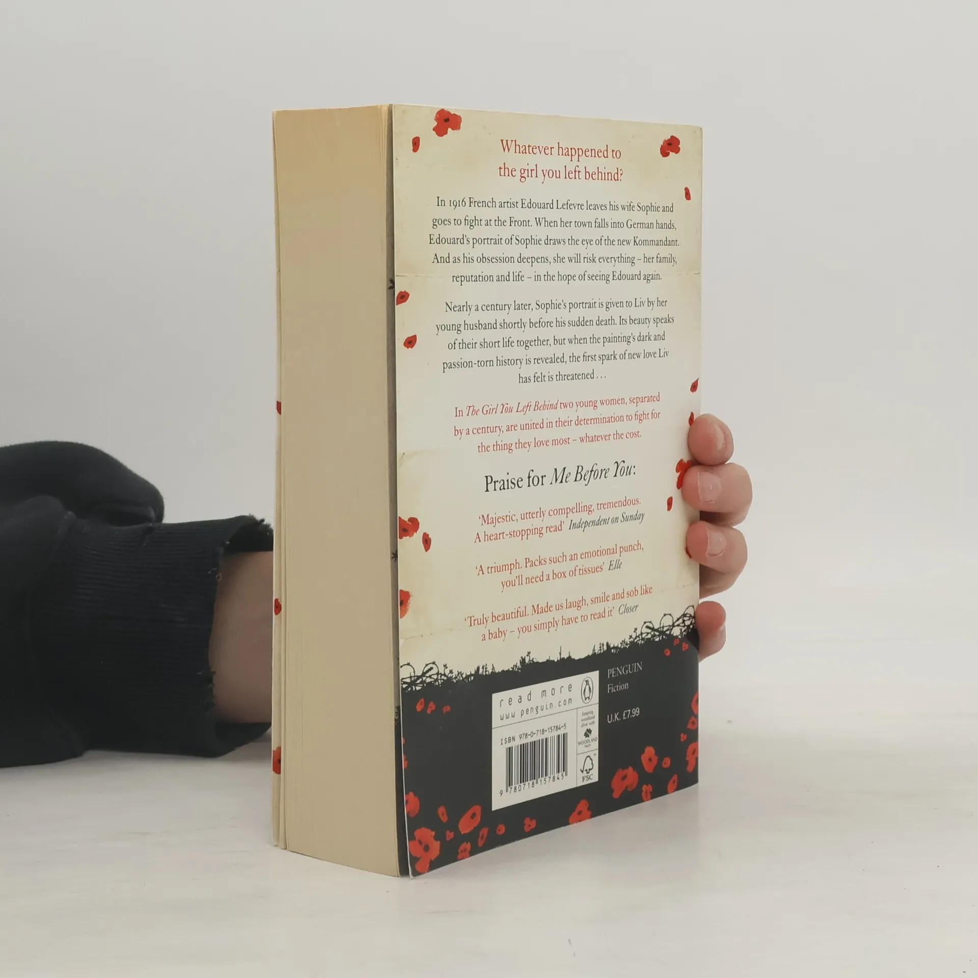 : The Girl You Left Behind is a hauntingly romantic and utterly irresistible new weepy from Jojo Moyes, author of the Richard and Judy bestseller, Me Before You. What happened to the girl you left behind? France, 1916. Sophie Lefevre must keep her family safe whilst her adored husband Edouard fights at the front. When she is ordered to serve the German officers who descend on her hotel each evening, her home becomes riven by fierce tensions. And from the moment the new Kommandant sets eyes on Sophie's portrait - painted by Edouard - a dangerous obsession is born, which will lead Sophie to make a dark and terrible decision. Almost a century later, and Sophie's portrait hangs in the home of Liv Halston, a wedding gift from her young husband before he died. A chance encounter reveals the painting's true worth, and its troubled history.
