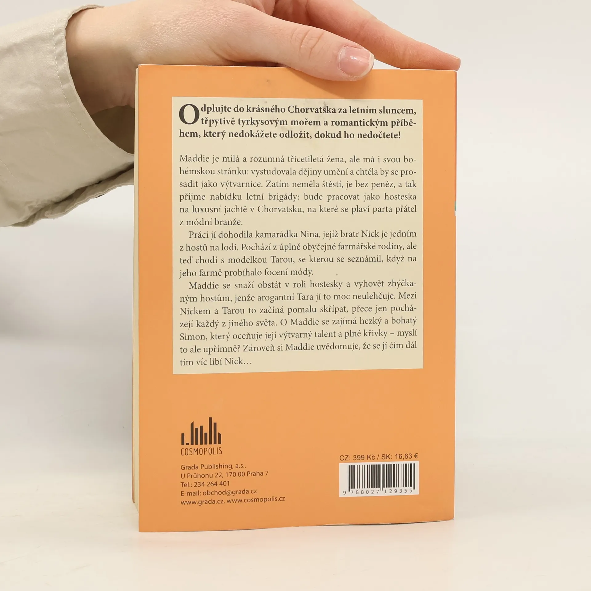 Maddie je milá a rozumná třicetiletá žena, ale má i svou bohémskou stránku: vystudovala dějiny umění a chtěla by se prosadit jako výtvarnice. Zatím neměla štěstí, je bez peněz, a tak přijme nabídku letní brigády: bude pracovat jako hosteska na luxusní jachtě v Chorvatsku, na které se plaví parta přátel z módní branže. Práci jí dohodila kamarádka Nina, jejíž bratr Nick je jedním z hostů na lodi. Pochází z úplně obyčejné farmářské rodiny, ale teď chodí s modelkou Tarou, se kterou se seznámil, když na jeho farmě probíhalo focení módy. Maddie se snaží obstát v roli hostesky a vyhovět zhýčkaným hostům, jenže arogantní Tara jí to moc neulehčuje. Mezi Nickem a Tarou to začíná pomalu skřípat, přece jen pocházejí každý z jiného světa. O Maddie se zajímá jeden z hostů, hezký a bohatý Simon, který oceňuje její výtvarný talent a plné křivky – myslí to ale upřímně? Zároveň si Maddie uvědomuje, že se jí čím dál tím víc líbí Nick…