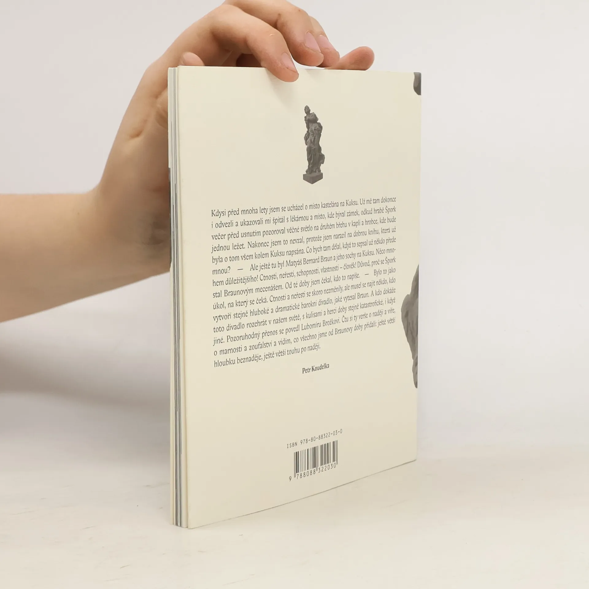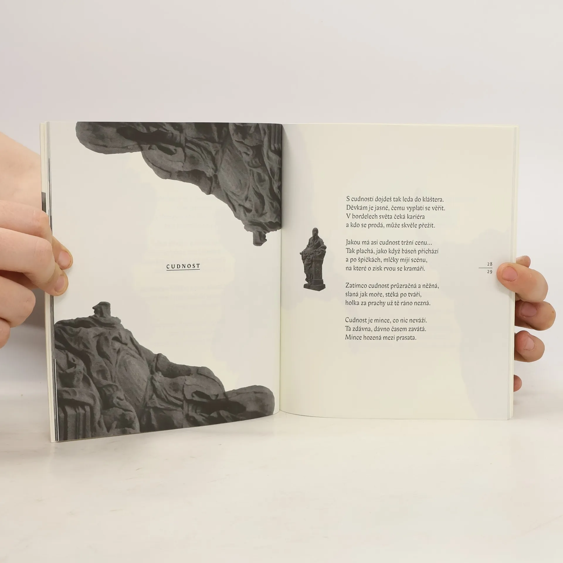 Šestadvacet sonetů inspirovaných sochařskou alegorií Ctností a Neřestí. Mistrovské plastiky Matyáše Bernarda Brauna, jedno z vrcholných děl evropského baroka, jsou básníkovi partnerem k současnému domýšlení dobra a hříchu. Zároveň ale vybroušenou poetickou formou vzdávají poctu sochařovu metaforickému umění, které si podmaňuje každého svého diváka. Básnická sbírka je bez nadsázky výjimečným počinem v řeči vázané, připomenutím, co pro naše životy znamenají krása a etika.