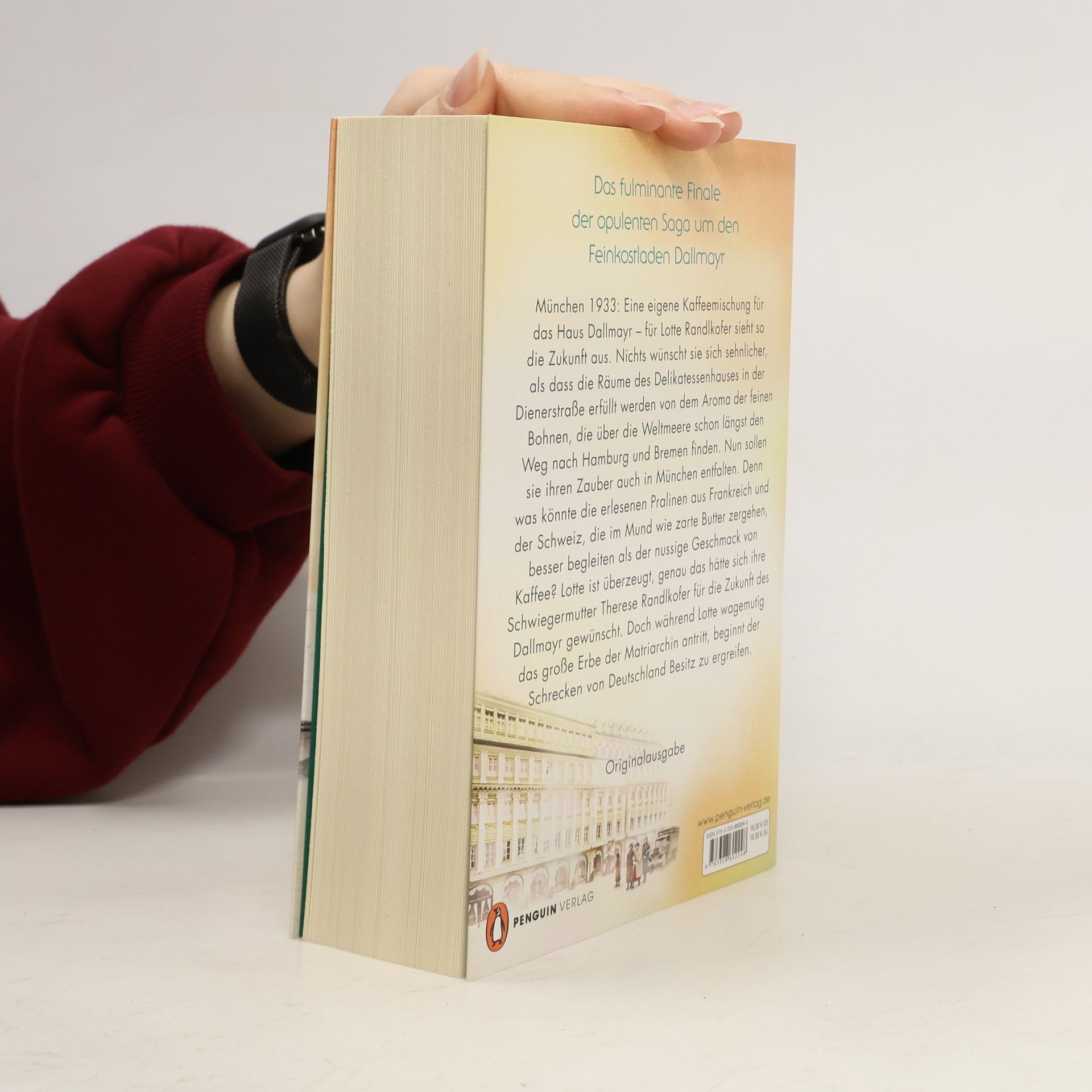 So genussvoll wie der Duft von frisch gebrühtem Kaffee am Morgen München 1933: Eine eigene Kaffeemischung für das Hause Dallmayr – für Lotte Randlkofer sieht so die Zukunft aus. Nichts wünscht sie sich sehnlicher, als dass die Räume des Delikatessenhauses in der Dienerstraße erfüllt werden von dem Aroma der feinen Bohnen, die über die Weltmeere schon längst den Weg nach Hamburg und Bremen finden. Nun sollen sie ihren Zauber auch in München entfalten. Denn was könnte die erlesenen Pralinen aus Frankreich und der Schweiz, die im Mund wie zarte Butter zergehen, besser begleiten als der nussige Geschmack von Kaffee? Lotte ist überzeugt, genau das hätte sich ihre Schwiegermutter Therese Randlkofer für die Zukunft des Dallmayr gewünscht. Doch während Lotte wagemutig das große Erbe der Matriarchin antritt, beginnt der Schrecken von Deutschland Besitz zu ergreifen. Akribisch recherchiert und mitreißend geschrieben – der Abschluss einer unvergesslichen Familiensaga rund um den Feinkostladen Dallmayr. Ein liebevoll gestaltetes Paperback vollendet dieses Lesevergnügen!