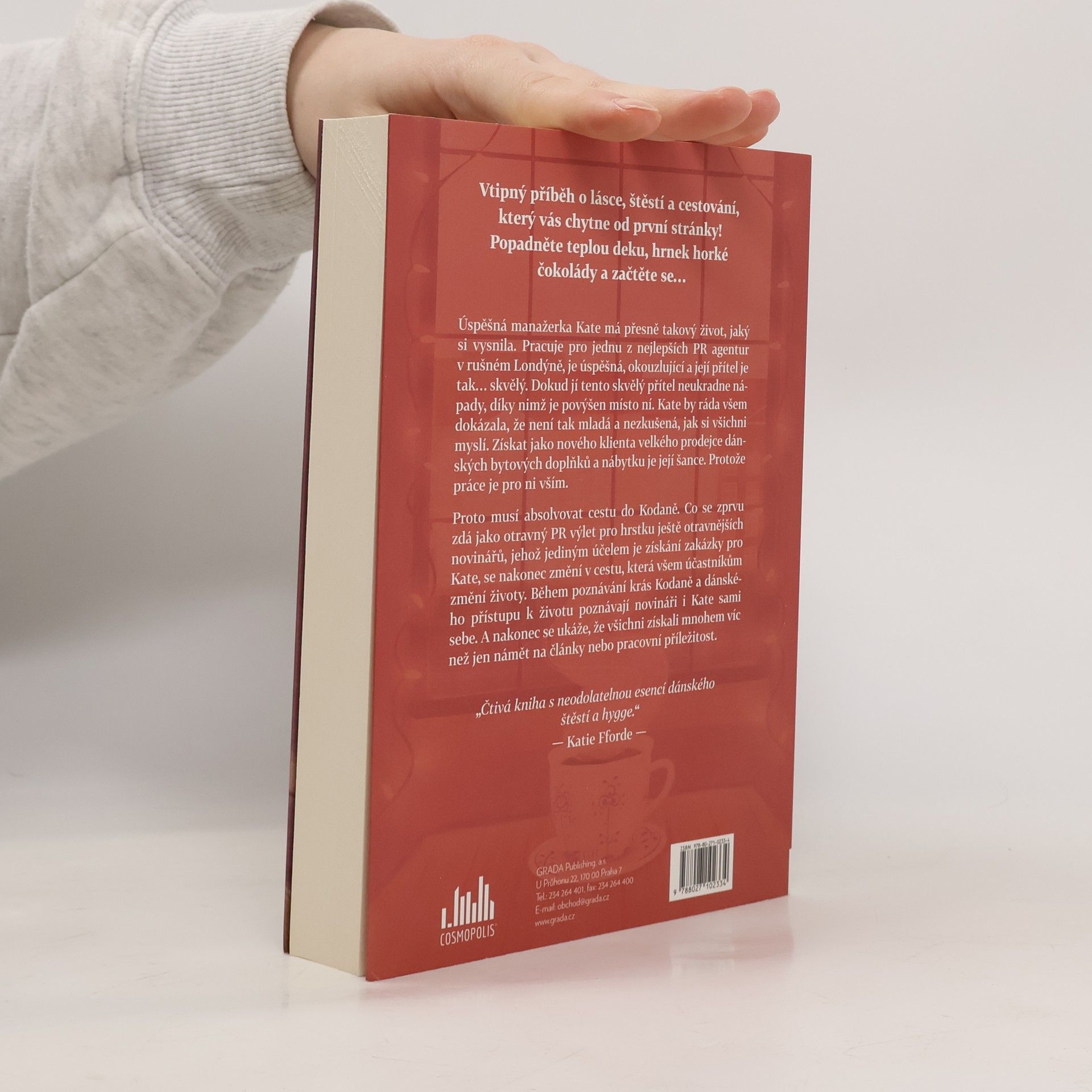 Vtipný příběh o lásce, štěstí a cestování, který vás chytne od první stránky! Popadněte teplou deku, hrnek horké čokolády a začtěte se…Úspěšná manažerka Kate má přesně takový život, jaký si vysnila. Pracuje pro jednu z nejlepších PR agentur v rušném Londýně, je úspěšná, okouzlující a její přítel je tak… skvělý. Dokud jí tento skvělý přítel neukradne nápady, díky nimž je povýšen místo ní. Kate by ráda všem dokázala, že není tak mladá a nezkušená, jak si všichni myslí. Získat jako nového klienta velkého prodejce dánských bytových doplňků a nábytku je její šance. Protože práce je pro ni vším.Proto musí absolvovat cestu do Kodaně. Co se zprvu zdá jako otravný PR výlet pro hrstku ještě otravnějších novinářů, jehož jediným účelem je získání zakázky pro Kate, se nakonec změní v cestu, která všem účastníkům změní životy. Během poznávání krás Kodaně a dánského přístupu k životu poznávají novináři i Kate sami sebe. A nakonec se ukáže, že všichni získali mnohem víc než jen námět na články nebo pracovní příležitost.
