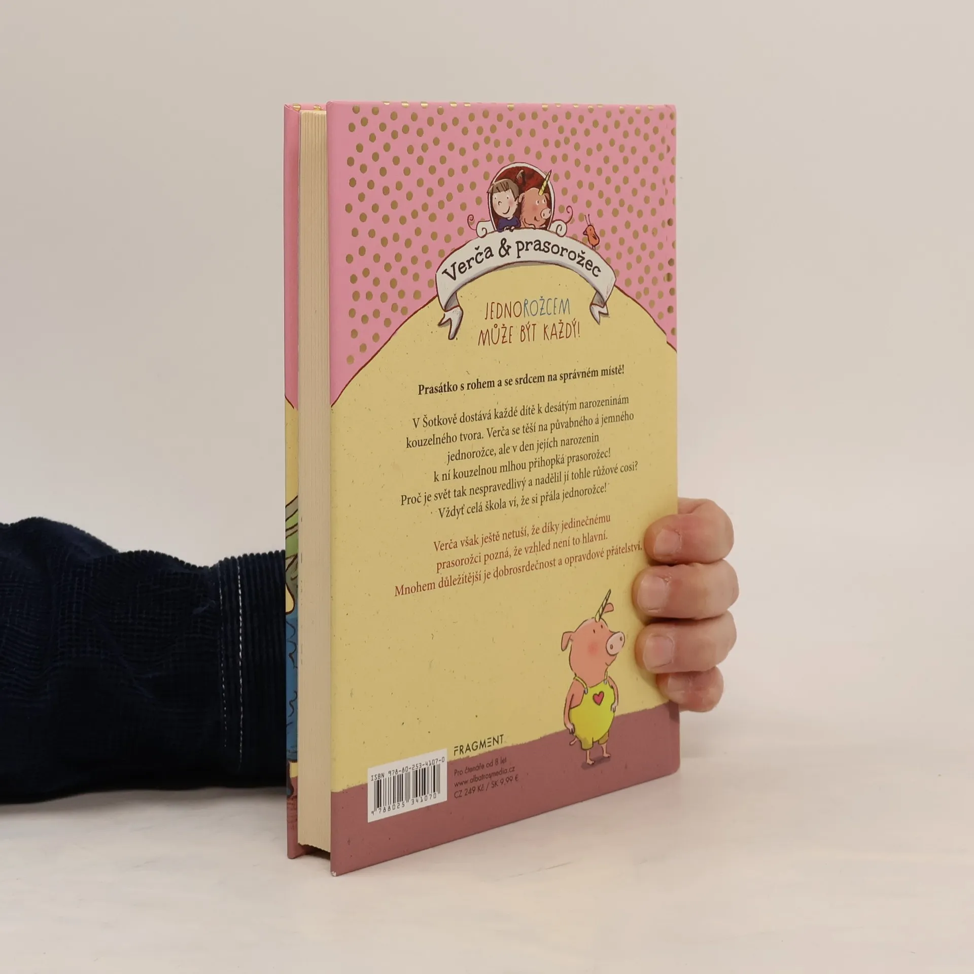 Prasátko s rohem a se srdcem na správném místě! V Šotkově dostává každé dítě k desátým narozeninám kouzelného tvora. Verča se těší na půvabného a jemného jednorožce, ale v den jejích narozenin k ní kouzelnou mlhou přihopká prasorožec! Proč je svět tak nespravedlivý a nadělil jí tohle růžové cosi? Vždyť celá škola ví, že si přála jednorožce! Verča však ještě netuší, že díky jedinečnému prasorožci pozná, že vzhled není to hlavní. Mnohem důležitější je dobrosrdečnost a opravdové přátelství.