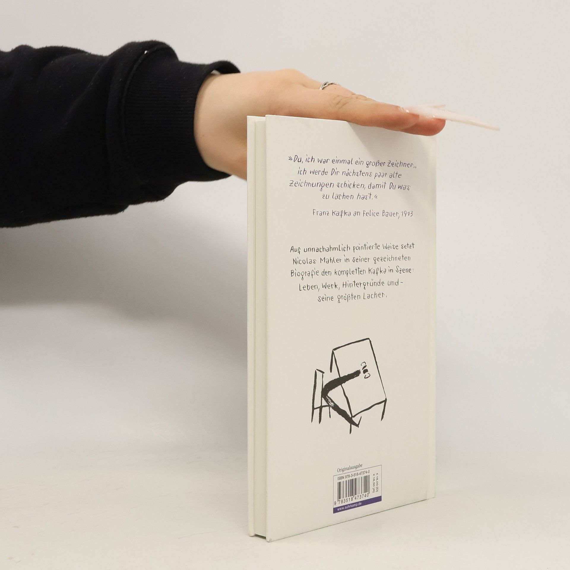 Franz Kafka hat nicht nur Prosa geschrieben, er zeichnete auch leidenschaftlich gern: »Du, ich war einmal ein großer Zeichner«, schrieb er 1913 halb ironisch, halb stolz an seine Dauerverlobte Felice Bauer über seine künstlerischen Ambitionen. Sein Zeichnen hätte ihn einst »mehr befriedigt als irgendetwas«. Was liegt also näher, als ihn zu seinem Jubiläum mit einer Comic-Biografie zu ehren? Und dann auch noch von Nicolas Mahler, der einen ähnlich minimalistischen Zeichenstil pflegt? Auf unnachahmlich witzig-pointierte Weise setzt Mahler hier Kafkas Leben und Werk in Szene und schreckt dabei auch nicht vor den ganz großen Fragen zurück: Warum scheiterte Kafkas Plan, eine Reihe von Billigreiseführern zu schreiben? Wer verfasste die Fortsetzung eines seiner wichtigsten Werke, »Die Rückverwandlung des Gregor Samsa«? Und was hatte es mit der »weißen Sklavin« auf sich? Die Antworten und noch vieles mehr findet sich in Komplett Kafka.