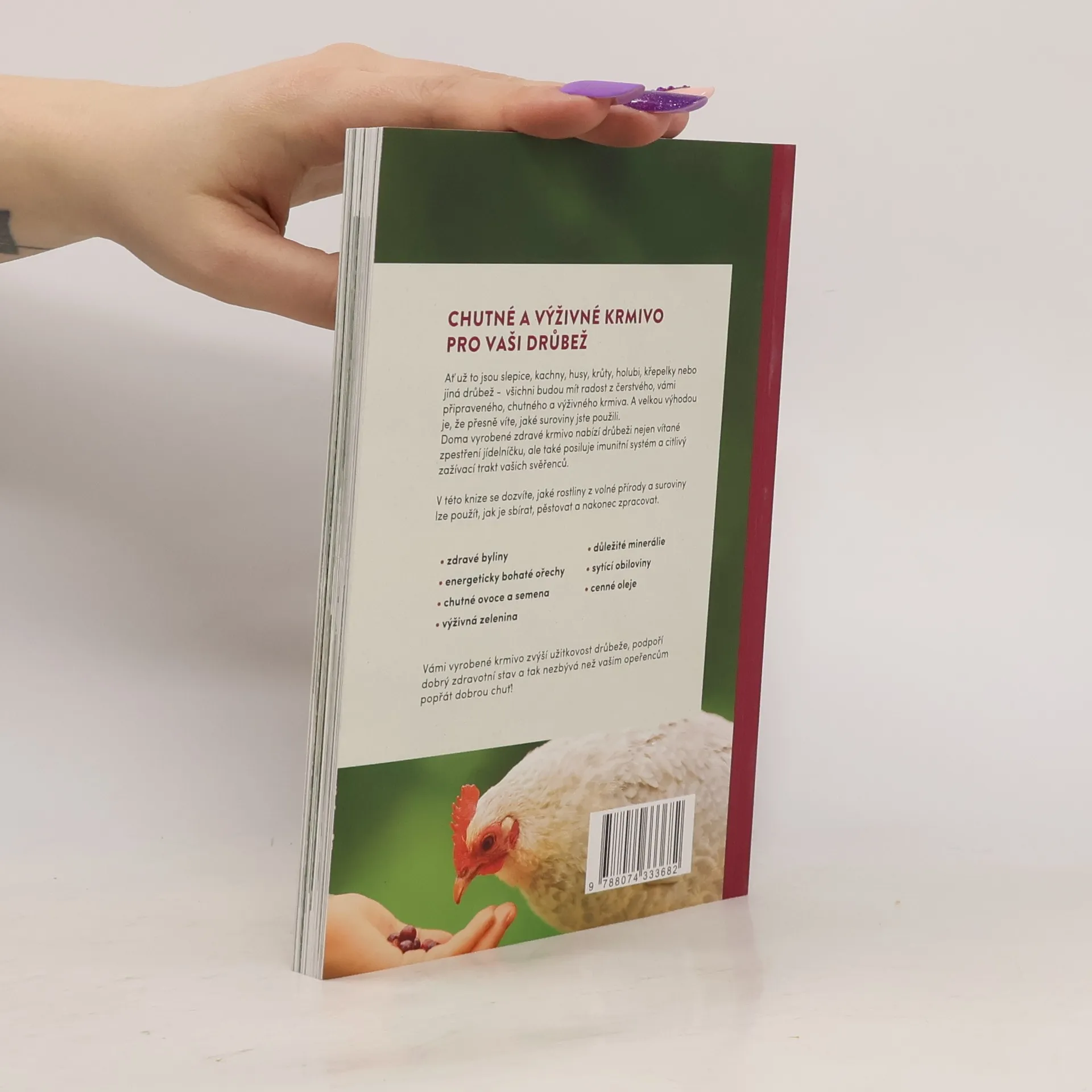 Ať už to jsou slepice, kachny, husy, krůty, holubi, křepelky nebo jiná drůbež - všichni budou mít radost z čerstvého, vámi připraveného, chutného a výživného krmiva. A velkou výhodou je, že přesně víte, jaké suroviny jste použili. Doma vyrobené zdravé krmivo nabízí drůbeži nejen vítané zpestření jídelníčku, ale také posiluje imunitní systém a citlivý zažívací trakt vašich svěřenců. V této knize se dozvíte, jaké rostliny z volné přírody a suroviny lze použít, jak je sbírat, pěstovat a nakonec zpracovat. • zdravé byliny • energeticky bohaté ořechy • chutné ovoce a semena • výživná zelenina • důležité minerálie • sytící obiloviny • cenné oleje Vámi vyrobené krmivo zvýší užitkovost drůbeže, podpoří dobrý zdravotní stav a tak nezbývá než vašim opeřencům popřát dobrou chuť!