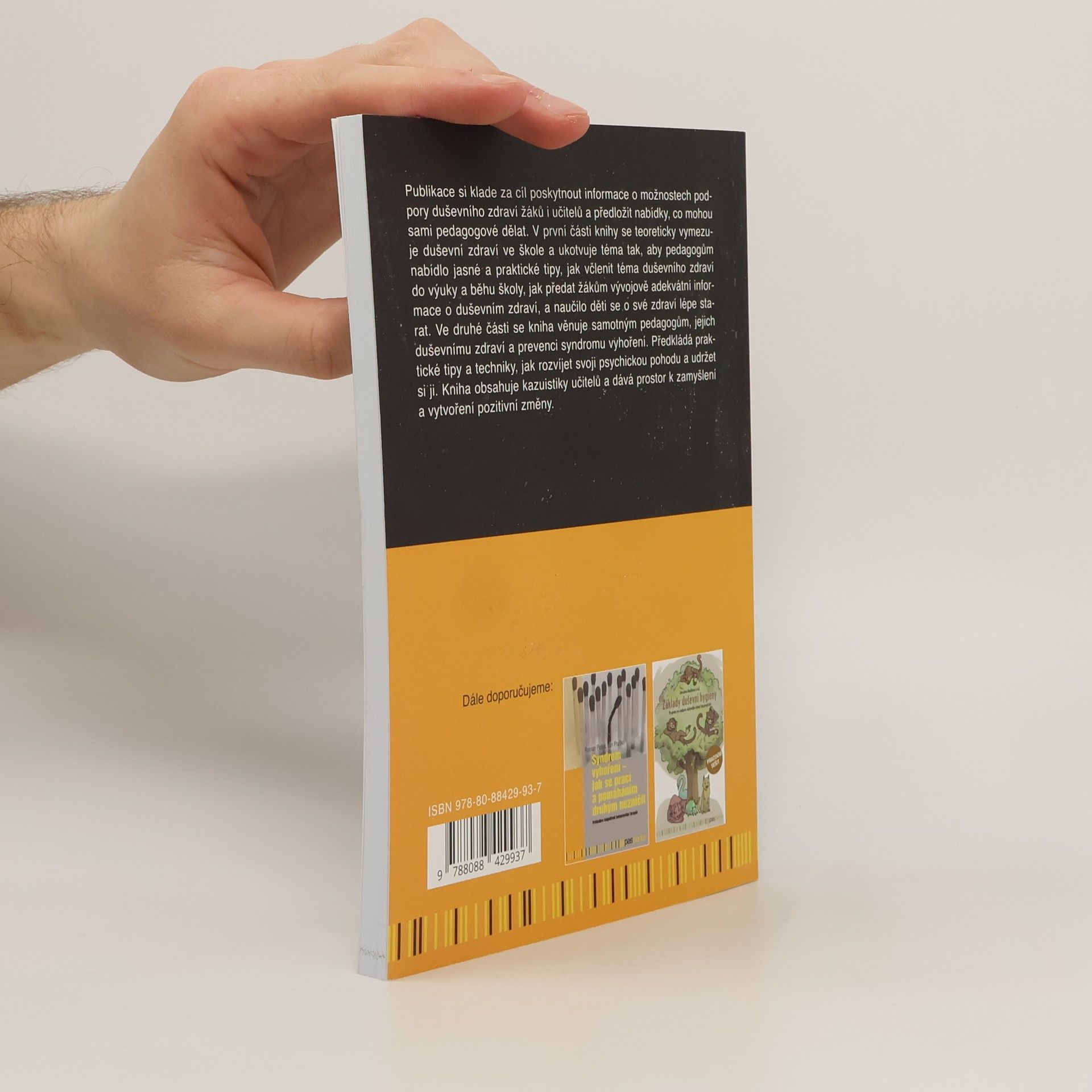 Publikace si klade za cíl poskytnout informace o možnostech podpory duševního zdraví žáků i učitelů a předložit nabídky, co mohou sami pedagogové dělat. V první části knihy se teoreticky vymezuje duševní zdraví ve škole a ukotvuje téma tak, aby pedagogům nabídlo jasné a praktické tipy, jak včlenit téma duševního zdraví do výuky a běhu školy, jak předat žákům vývojově adekvátní informace o duševním zdraví, a naučilo děti se o své zdraví lépe starat. Ve druhé části se kniha věnuje samotným pedagogům, jejich duševnímu zdraví a prevenci syndromu vyhoření. Předkládá praktické tipy a techniky, jak rozvíjet svoji psychickou pohodu a udržet si ji. Kniha obsahuje kazuistiky učitelů a dává prostor k zamyšlení a vytvoření pozitivní změny.