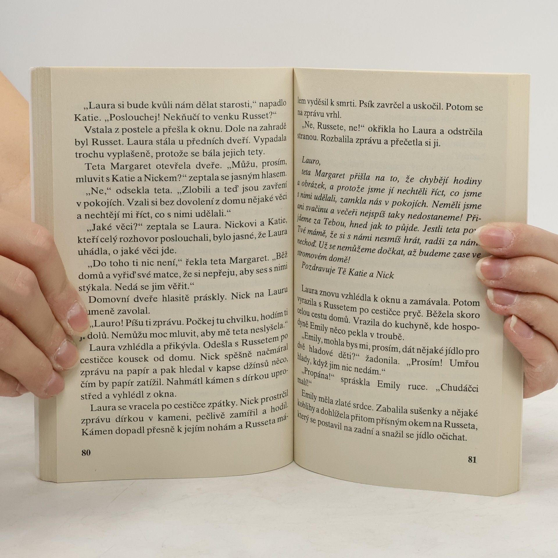 Nick a Katie odjedou ke strýčkovi a tetě, ale teta Margaret jim dá najevo, že nejsou vůbec vítáni. Sourozenci se brzy seznámí s Laurou, děvčetem ze sousedství, ale protože nemají jinou volbu, rozhodnou se oba utéct a zařídit si nový domov v lese. Jejich tajemství zná jen Laura a její pes Russet. Laura nosí Nickovi a Katie jídlo, ale pak se najednou stane neštěstí a Laura zmizí... Odhalí Nick, Katie a Russet, kde se Laura skrývá? A co se s nimi stane pak?