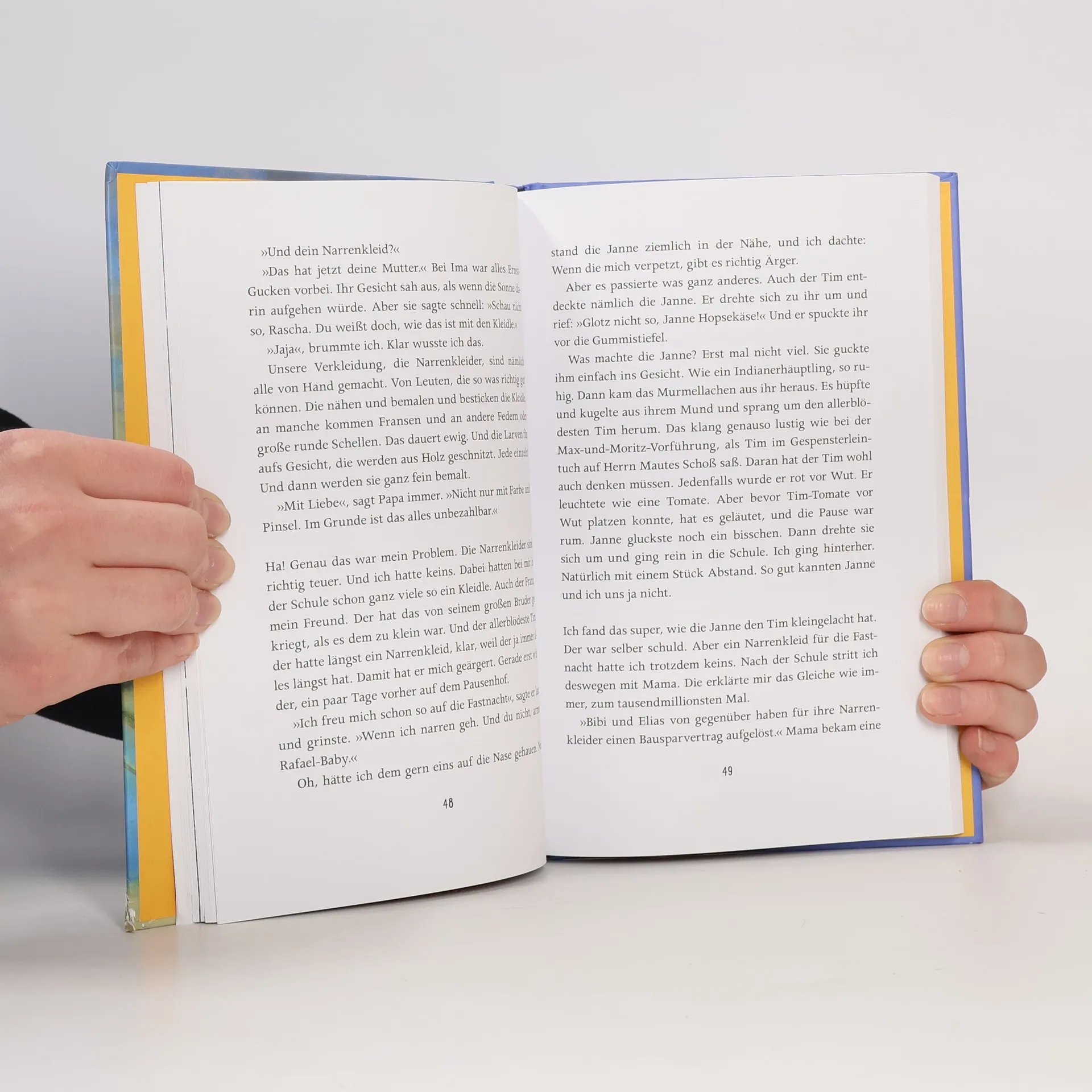 Für Rascha ist Ima der liebste Mensch. Im Gesicht seiner Oma steckt immer ein Lächeln, auch wenn sie ernst guckt. Ima macht nicht viele Worte - und wenn, dann sind es Felsbrockensätze, so kraftvoll, dass keiner an ihnen vorbeikommt. Als Ima entscheidet, ins Seniorenheim zu ziehen, weil sie die Treppen nicht mehr schafft, kommt die Familie ziemlich durcheinander. Zum Glück ist das Heim nicht weit weg und hier geschieht ein kleines Wunder für Rascha: Er bekommt von Ima ein Narrenkleid für die Fastnacht geschenkt. Ein richtiges altes, wie es sie fast nicht mehr gibt! Direkt vor dem heiß ersehnten Fest erfährt die Familie, dass Ima sehr krank ist. Doch die sieht keinen Grund, Trübsal zu blasen. „Ihr feiert gefälligst die Fastnacht!", ist Imas Felsbrockensatz. Rascha erlebt seine erste Fastnacht als Narr - und was für eine! Dass Ima sich ausgerechnet an diesem Tag zu Opa Karle in den Himmel aufmacht, kann Rascha verstehen.