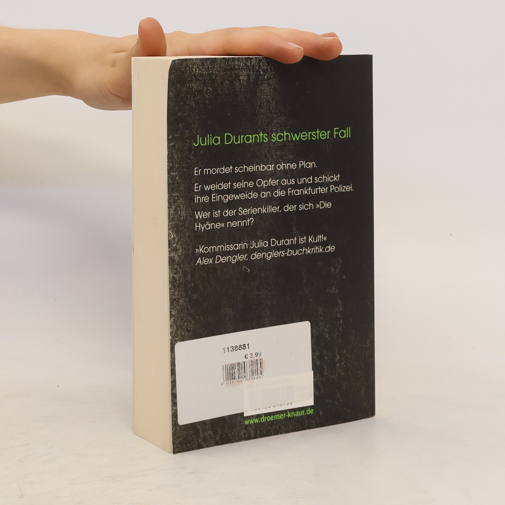 Seit ihrem ersten Fall zählt die Frankfurter Kommissarin Julia Durant zu den beliebtesten Ermittlerinnen in Deutschland. Ihre Leser lieben ihre manchmal spröde, kompromisslose, immer aber von großer Empathie geprägte Art. In ihrem 15. Fall bekommt es Julia mit einem Mörder zu tun, der sich selbst »Die Hyäne« nennt: Er mordet scheinbar ohne Plan und schickt die Eingeweide seiner Opfer an die Polizei.