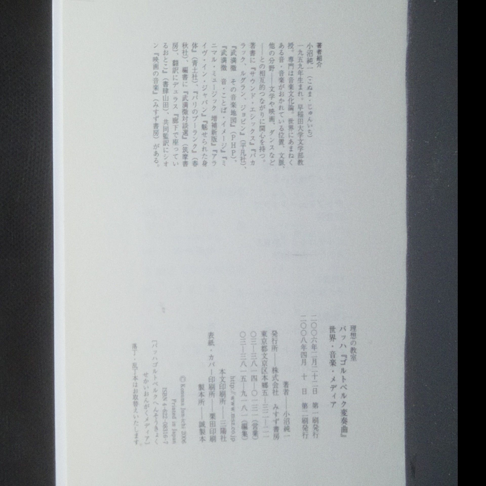 バッハ『ゴルトベルク変奏曲』世界・音楽・メディア 理想の教室 (Bahha “gorutoberuku hensōkyoku” sekai ongaku media risō no kyōshitsu), 小沼純一 著.