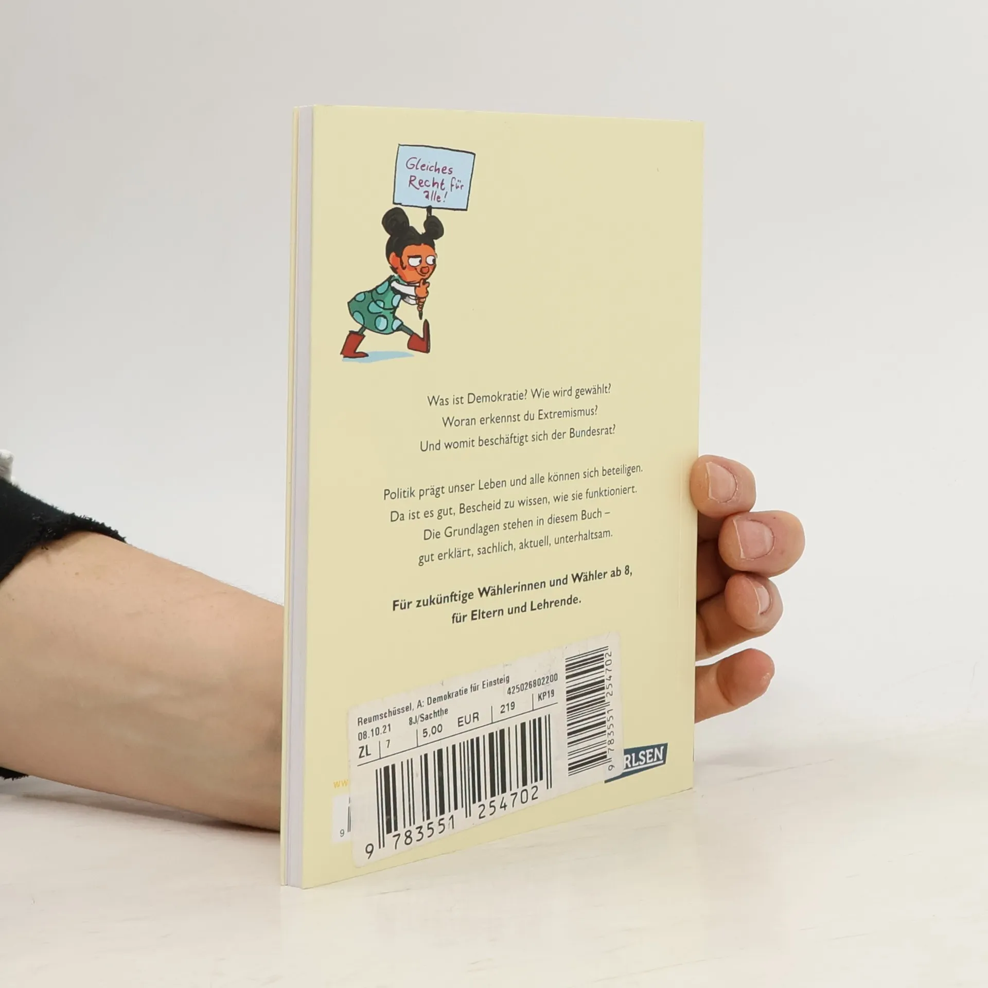 Was ist Demokratie? Wie wird gewählt? Woran erkennst du Extremismus? Und womit beschäftigt sich der Bundesrat?Politik prägt unser Leben und alle können sich beteiligen. Da ist es gut, Bescheid zu wissen, wie sie funktioniert. Die Grundlagen stehen in diesem Buch- gut erklärt, sachlich, sktuell, unterhaltsam.Für zukünftige Wählerinnen und Wähler ab 8, für Eltern und Lehrende.