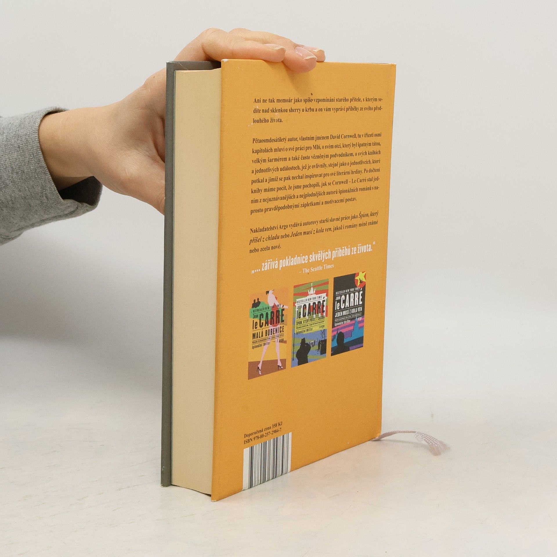 Ani ne tak memoár jako spíše vzpomínání starého přítele, s kterým sedíte nad sklenkou sherry u krbu, a on vám vypráví příběhy ze svého předlouhého života. Pětaosmdesátiletý autor, vlastním jménem David Cornwell, tu v třiceti osmi kapitolách mluví o své práci pro MI6, o svém otci, který byl špatným tátou, velkým šarmérem a také často vězněným podvodníkem, o svých knihách a jednotlivých událostech, jež je ovlivnily, stejně jako o jednotlivcích, které potkal a jimiž se pak nechal inspirovat pro své literární hrdiny. Po dočtení knihy máme pocit, že jsme pochopili, jak se Cornwell – Le Carré stal jedním z nejuznávanějších a nejplodnějších autorů špionážních románů s naprosto pravděpodobnými zápletkami a motivacemi postav. „… zářivá pokladnice skvělých příběhů ze života.“ – The Seattle Times
