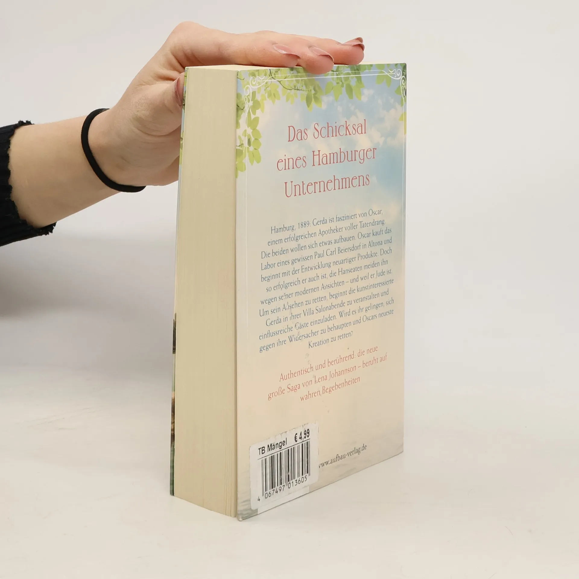 Das Schicksal eines Hamburger Unternehmens. Hamburg, 1889: Gerda ist fasziniert von Oscar, einem erfolgreichen Apotheker voller Tatendrang. Die beiden wollen sich etwas aufbauen. Oscar kauft das Labor eines gewissen Paul Carl Beiersdorf in Altona und beginnt mit der Entwicklung neuartiger Produkte. Doch so erfolgreich er auch ist, die Hanseaten meiden ihn wegen seiner modernen Ansichten – und weil er Jude ist. Um sein Ansehen zu retten, beginnt die kunstinteressierte Gerda in ihrer Villa Salonabende zu veranstalten und einflussreiche Gäste einzuladen. Wird es ihr gelingen, sich gegen ihre Widersacher zu behaupten und Oscars neueste Kreation zu retten? Authentisch und berührend: die neue große Saga von Lena Johannson – beruht auf wahren Begebenheiten