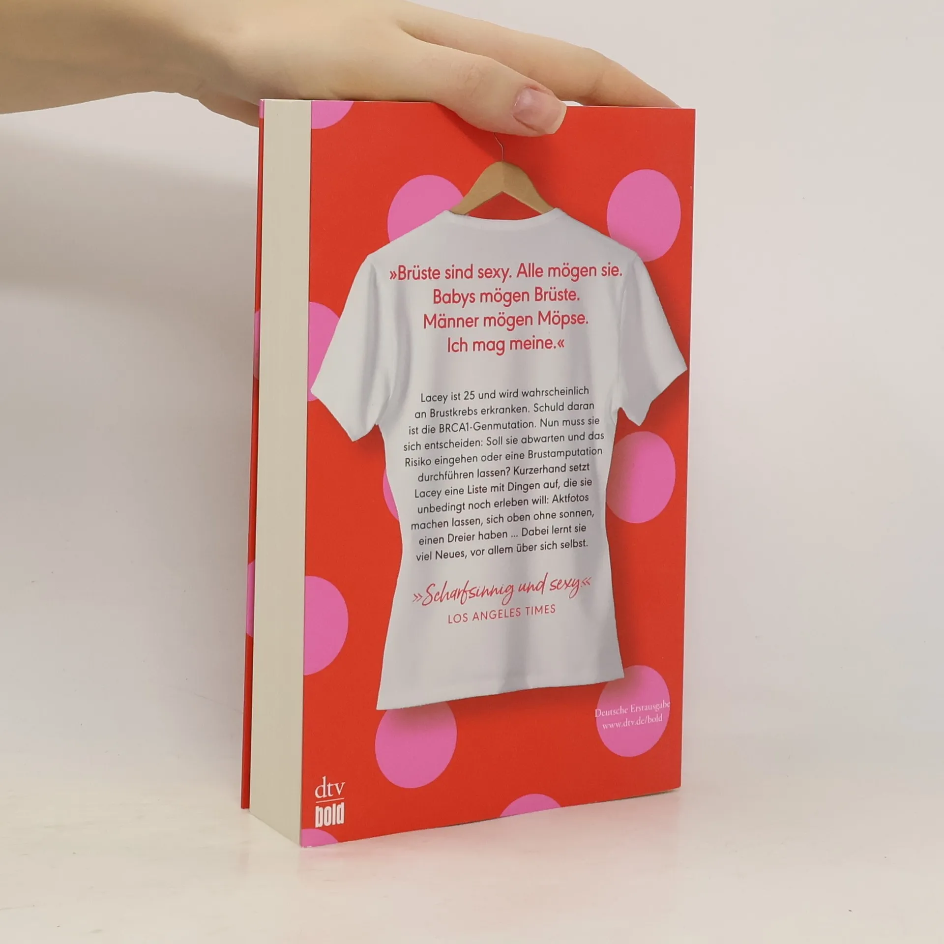 »Aufrichtig und sexy.« Publishers Weekly Lacey ist 25, als sie erfährt, dass sie aufgrund einer BRCA1-Mutation mit sehr hoher Wahrscheinlichkeit an Brustkrebs erkranken wird. Nun steht sie vor einer schwierigen Entscheidung: Soll sie abwarten und das Risiko eingehen oder eine Brustamputation durchführen lassen? Gemeinsam mit ihren besten Freundinnen setzt sie eine Liste mit Dingen auf, die sie unbedingt noch erleben will, bevor sie sich (möglicherweise) für die OP entscheidet: Aktfotos machen lassen, sich oben ohne sonnen, einen Dreier haben und mit einer Frau schlafen. Und mit jedem Punkt, den sie von ihrer Liste streicht, kommt Lacey nicht nur ihrer Entscheidung näher, sondern verliebt sich: in zwei Männer, eine Frau und sich selbst …