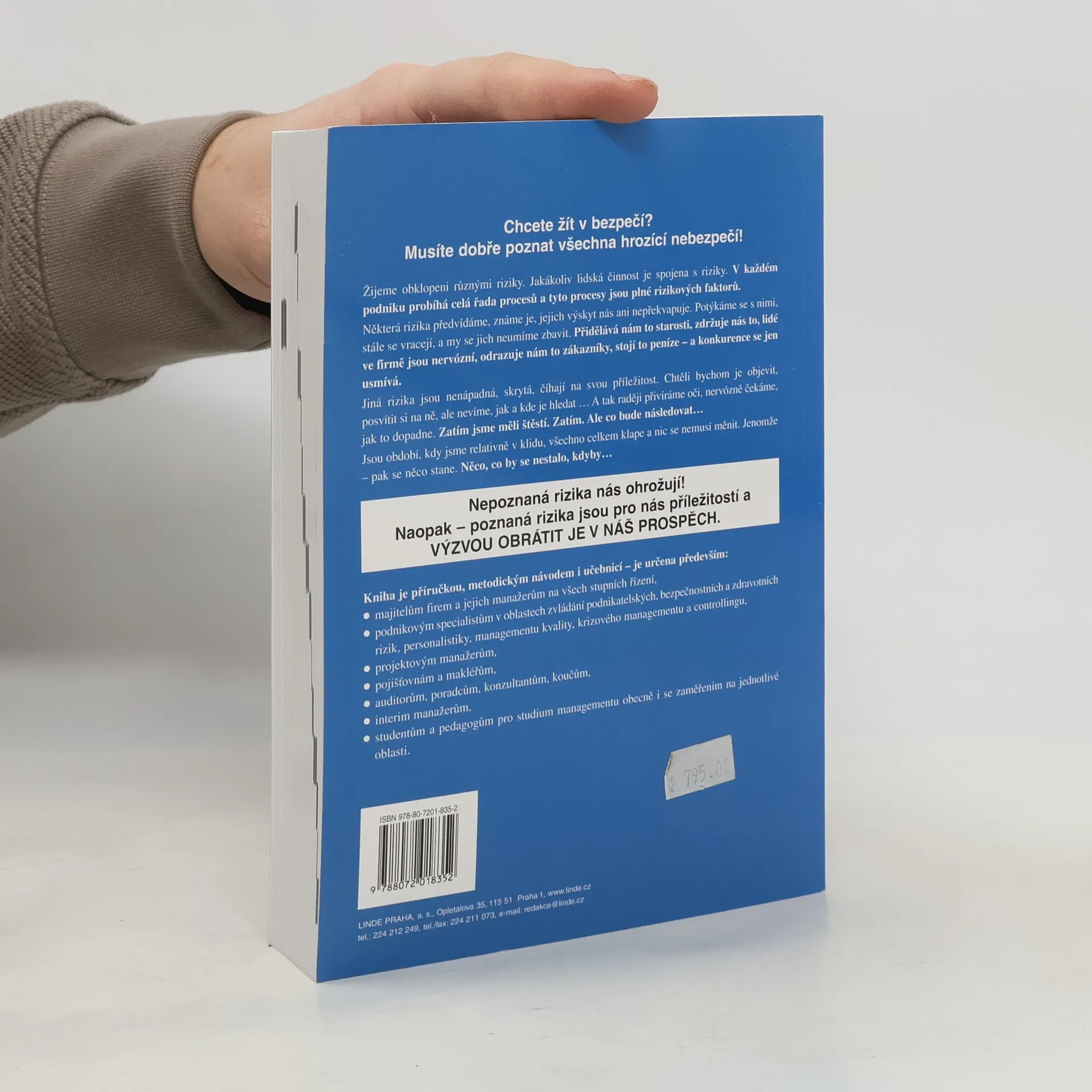 Kniha Jak vítězit nad riziky - aktivní management rizik – nástroj úspěšných firem přehledně mapuje všechny procesy a faktory, které v podnicích rozhodují o spolehlivosti, bezpečnosti, výkonnosti a efektivnosti procesů, a tím pádem o úspěšnosti podniků, a ukazuje, jak je ovládat.Příručka je určena specialistům v oblastech zvládání podnikatelských, bezpečnostních a zdravotních rizik, personalistiky, managementu kvality, krizového managementu a controllingu, manažerům na všech pozicích, pojišťovnám, makléřům, poradenským firmám, studentům a pedagogům v oblasti managementu i jednotlivých rizik.Autor Jiří Kruliš se problematice rizik věnuje dlouhodobě, přednáší toto téma pro firmy.