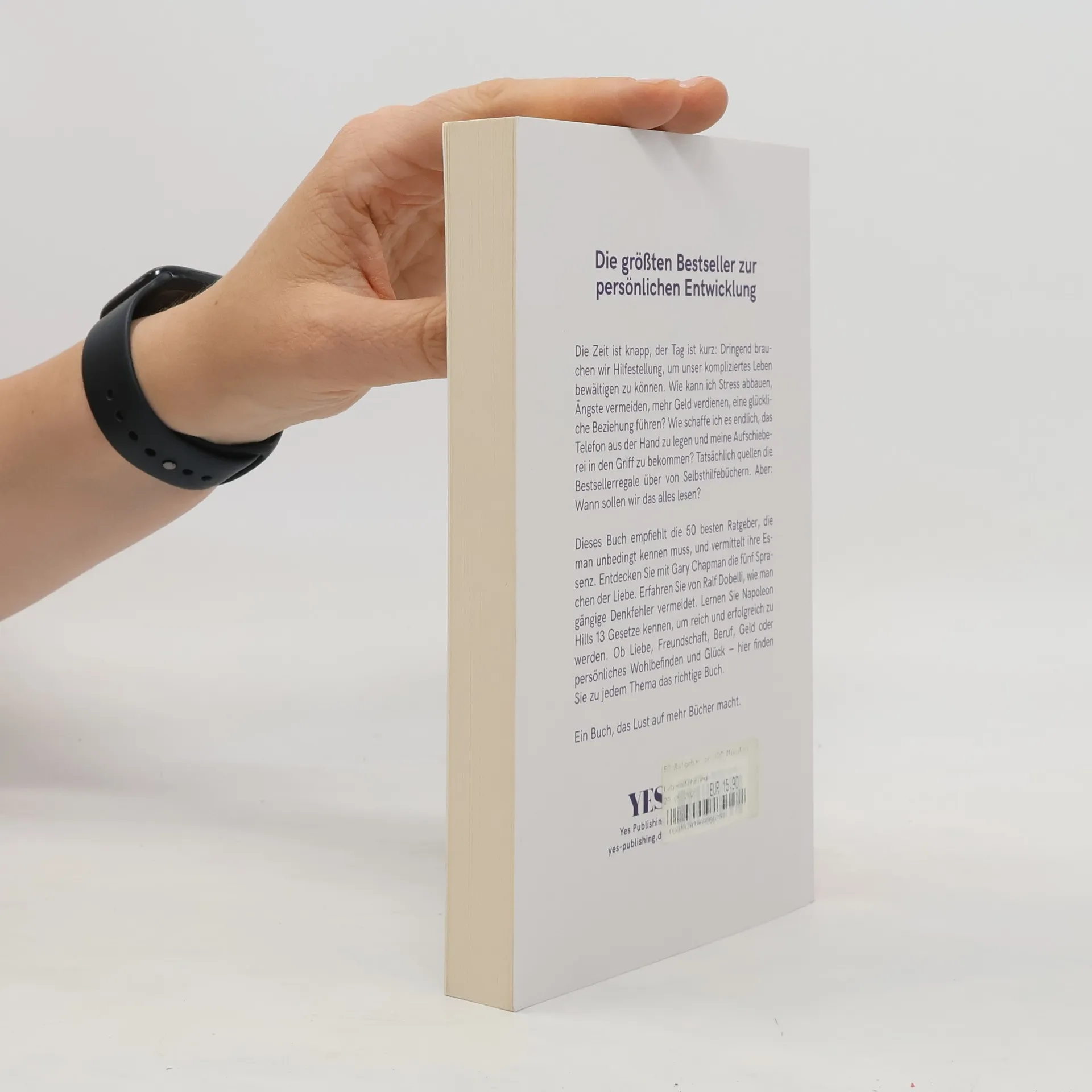 Die größten Bestseller zur persönlichen EntwicklungDie Zeit ist knapp, der Tag ist Dringend brauchen wir Hilfestellung, um unser kompliziertes Leben bewältigen zu können. Wie kann ich Stress abbauen, Ängste vermeiden, mehr Geld verdienen, eine glückliche Beziehung führen? Wie schaffe ich es endlich, das Telefon aus der Hand zu legen und meine Aufschieberei in den Griff zu bekommen? Tatsächlich quellen die Bestsellerregale über von Selbsthilfebüchern. Wann sollen wir das alles lesen?Dieses Buch empfiehlt die 50 besten Ratgeber, die man unbedingt kennen muss, und vermittelt ihre Essenz. Entdecken Sie mit Gary Chapman die fünf Sprachen der Liebe. Erfahren Sie von Ralf Dobelli, wie man gängige Denkfehler vermeidet. Lernen Sie Napoleon Hills 13 Gesetze kennen, um reich und erfolgreich zu werden. Ob Liebe, Freundschaft, Beruf, Geld oder persönliches Wohlbefinden und Glück – hier finden Sie zu jedem Thema das richtige Buch.Ein Buch, das Lust auf mehr Bücher macht.