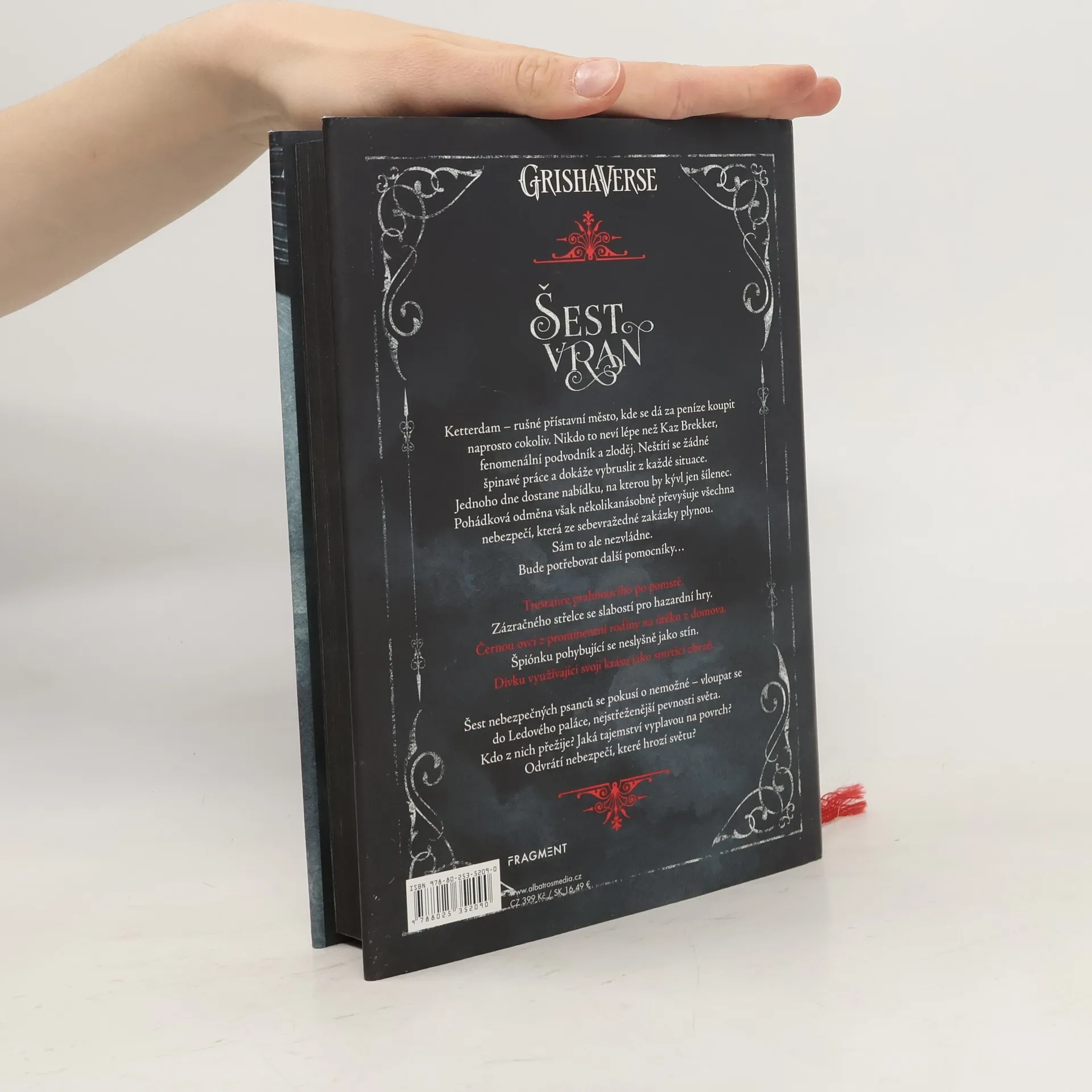 Ketterdam – rušné přístavní město, kde se dá za peníze koupit naprosto cokoliv. Nikdo to neví lépe než Kaz Brekker, fenomenální podvodník a zloděj. Neštítí se žádné špinavé práce a dokáže vybruslit z každé situace. Jednoho dne dostane nabídku, na kterou by kývl jen šílenec. Pohádková odměna však několikanásobně převyšuje všechna nebezpečí, která ze sebevražedné zakázky plynou. Sám to ale nezvládne. Bude potřebovat další pomocníky… Trestance prahnoucího po pomstě. Zázračného střelce se slabostí pro hazardní hry. Černou ovci z prominentní rodiny na útěku z domova. Špiónku pohybující se neslyšně jako stín. Dívku využívající svoji krásu jako smrtící zbraň. Šest nebezpečných psanců se pokusí o nemožné – vloupat se do Ledového paláce, nejstřeženější pevnosti světa. Kdo z nich přežije? Jaká tajemství vyplavou na povrch? Odvrátí nebezpečí, které hrozí světu?