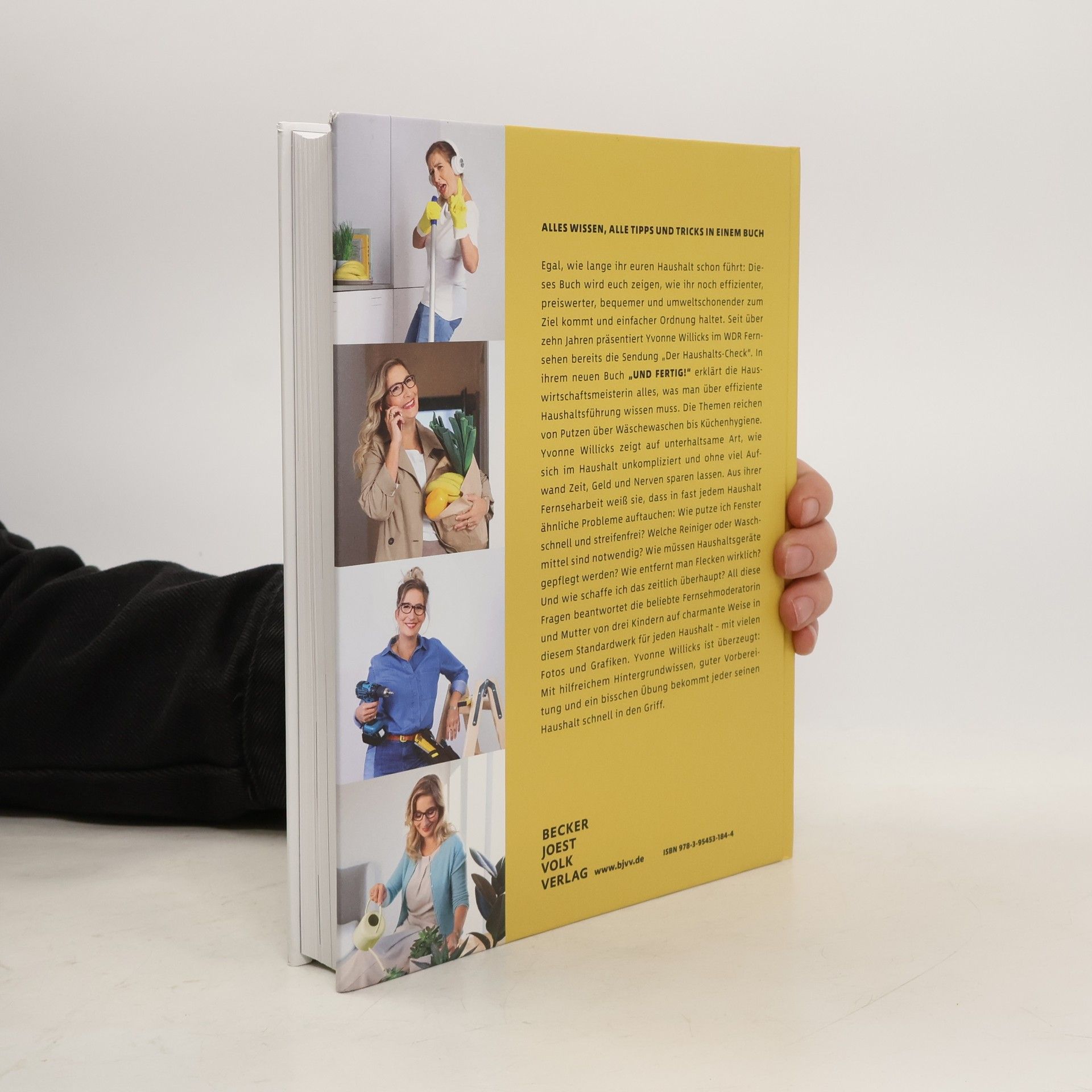 Alles Wissen, alle Tipps und Tricks in einem Buch Egal, wie lange ihr euren Haushalt schon führt: Dieses Buch wird euch zeigen, wie ihr noch effizienter, preiswerter, bequemer und umweltschonender zum Ziel kommt und einfacher Ordnung haltet. Seit über zehn Jahren präsentiert Yvonne Willicks im WDR Fernsehen bereits die Sendung „Der Haushalts-Check“. In ihrem neuen Buch „Und FERTIG!“ erklärt die Hauswirtschaftsmeisterin alles, was man über effiziente Haushaltsführung wissen muss. Die Themen reichen von Putzen über Wäschewaschen bis Küchenhygiene. Yvonne Willicks zeigt auf unterhaltsame Art, wie sich im Haushalt unkompliziert und ohne viel Aufwand Zeit, Geld und Nerven sparen lassen. Aus ihrer Fernseharbeit weiß sie, dass in fast jedem Haushalt ähnliche Probleme auftauchen: Wie putze ich Fenster schnell und streifenfrei? Welche Reiniger oder Waschmittel sind notwendig? Wie müssen Haushaltsgeräte gepflegt werden? Wie entfernt man Flecken wirklich? Und wie schaffe ich das zeitlich überhaupt? All diese Fragen beantwortet die beliebte Fernsehmoderatorin und Mutter von drei Kindern auf charmante Weise in diesem Standardwerk für jeden Haushalt – mit vielen Fotos und Grafiken. Yvonne Willicks ist überzeugt: Mit hilfreichem Hintergrundwissen, guter Vorbereitung und ein bisschen Übung bekommt jeder seinen Haushalt schnell in den Griff.