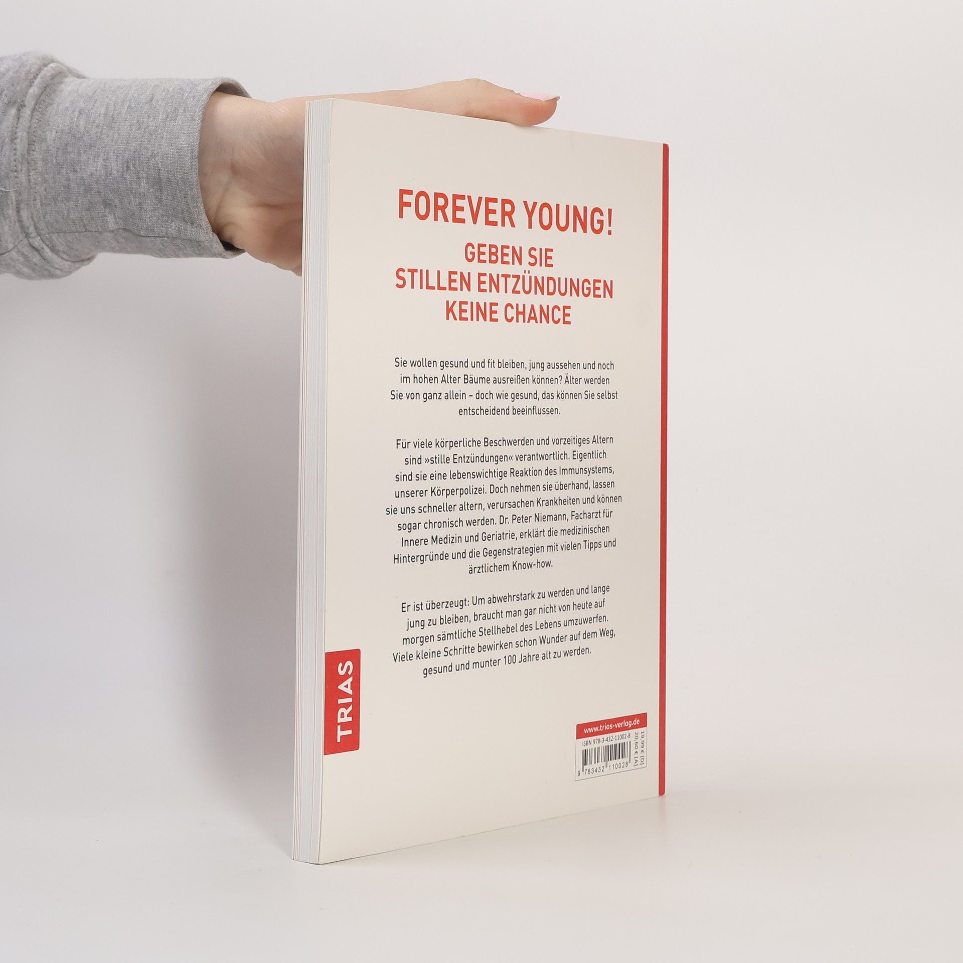 Forever young!Geben Sie stillen Entzündungen keine ChanceSie wollen gesund und fit bleiben, jung aussehen und noch im hohen Alter Bäume ausreißen können? Älter werden Sie von ganz allein – doch wie gesund, das können Sie selbst entscheidend beeinflussen.Für viele körperliche Beschwerden und vorzeitiges Altern sind »stille Entzündungen« verantwortlich. Eigentlich sind sie eine lebenswichtige Reaktion unserer Körperpolizei, des Immunsystems. Doch nehmen sie überhand, lassen sie uns schneller altern, verursachen Krankheiten und können sogar chronisch werden. Dr. Peter Niemann, Facharzt für Innere Medizin und Geriatrie, erklärt die medizinischen Hintergründe und die Gegenstrategien mit vielen Tipps und ärztlichem Know-how.Er ist ü Um abwehrstark zu werden und lange jung zu bleiben, braucht man gar nicht von heute auf morgen sämtliche Stellhebel des Lebens umzuwerfen. Viele kleine Schritte bewirken schon Wunder auf dem Weg, gesund und munter 100 Jahre alt zu werden.