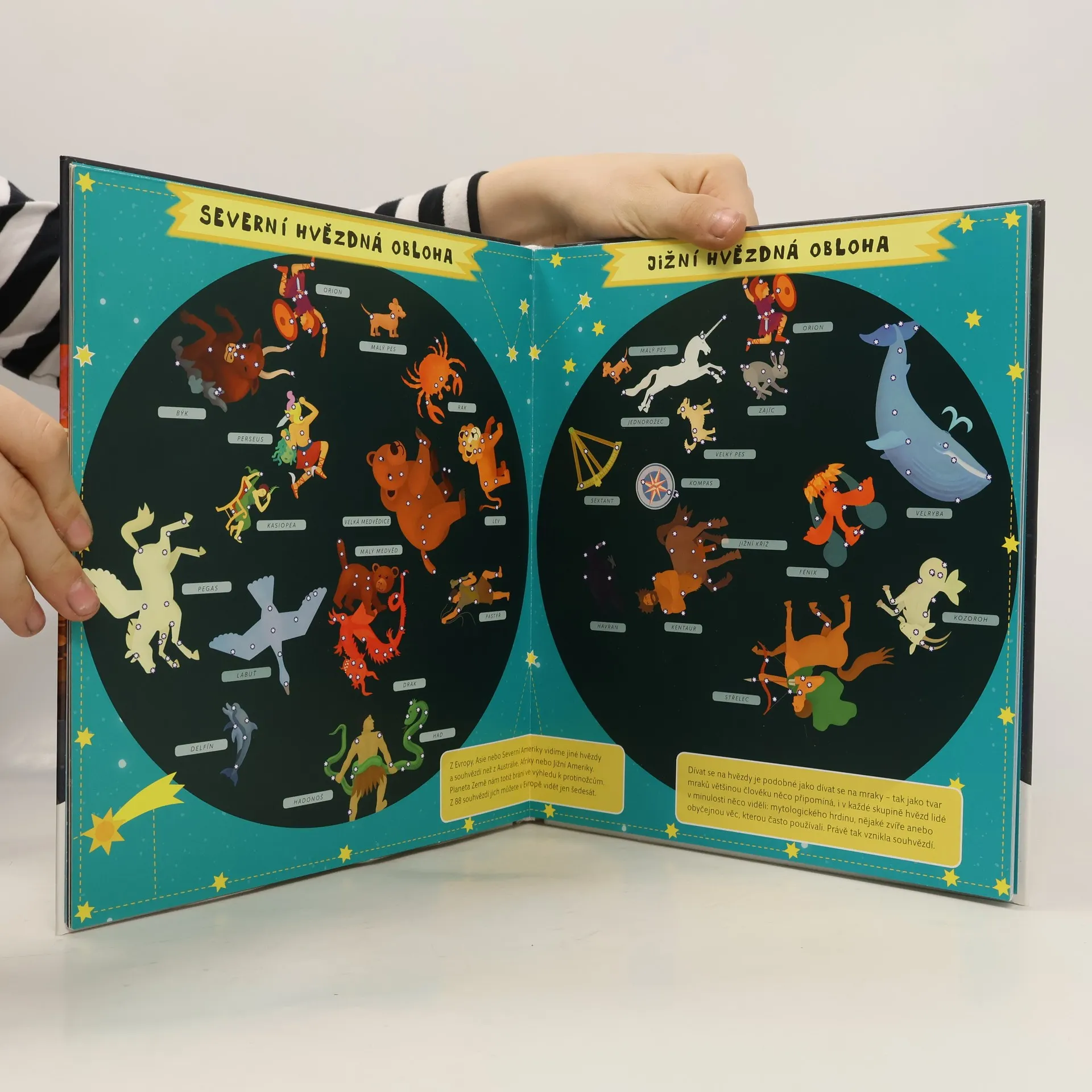 Nádherně ilustrovaný atlas s šesti velkými rozkládacími mapami odhalí všem malým zájemcům skrytá tajemství blízkého i  vzdáleného vesmíru. Čeká tě procházka po naší Sluneční soustavě, navštívíš komety a planetky, podnikneš výlet na Měsíc, seznámíš se s  prvními astronauty a vyzkoušíš si, jaké je cestovat v raketoplánu nebo žít na vesmírné stanici. Mapa severní i jižní oblohy tě naučí rozpoznávat ta nejznámější souhvězdí.