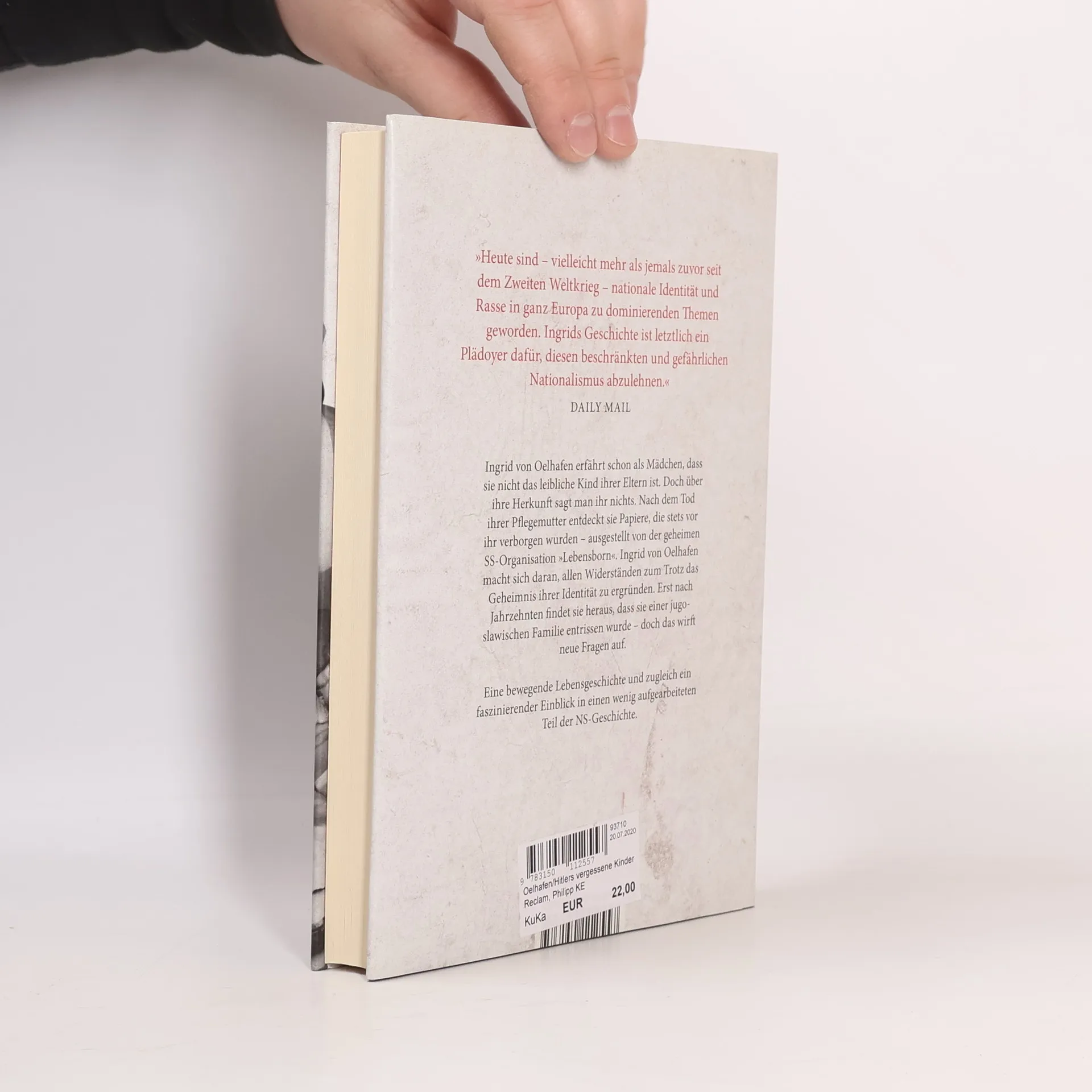 Im »Dritten Reich« wurden durch die SS-Organisation »Lebensborn« zahlreiche Kinder aus den besetzten Ländern Europas verschleppt – um von regimetreuen Familien in Deutschland adoptiert und aufgezogen zu werden. Der Nachwuchs sollte etwaige Kriegsverluste der deutschen Bevölkerung ausgleichen. Ingrid von Oelhafen erfährt erst sehr spät, dass auch sie eines dieser Lebensborn-Kinder war. Nach dem Tod ihrer Pflegemutter macht sie sich auf die Suche nach ihrer wahren Identität. Über lange Jahre scheitert sie, nicht zuletzt aufgrund der wenig entgegenkommenden Behörden. Endlich findet sie heraus, dass sie einer jugoslawischen Familie entrissen wurde – doch das wirft neue Fragen auf. Eine spannende Spurensuche und zugleich ein Lehrstück über den Umgang mit einem wenig aufgearbeiteten Teil der NS-Geschichte.