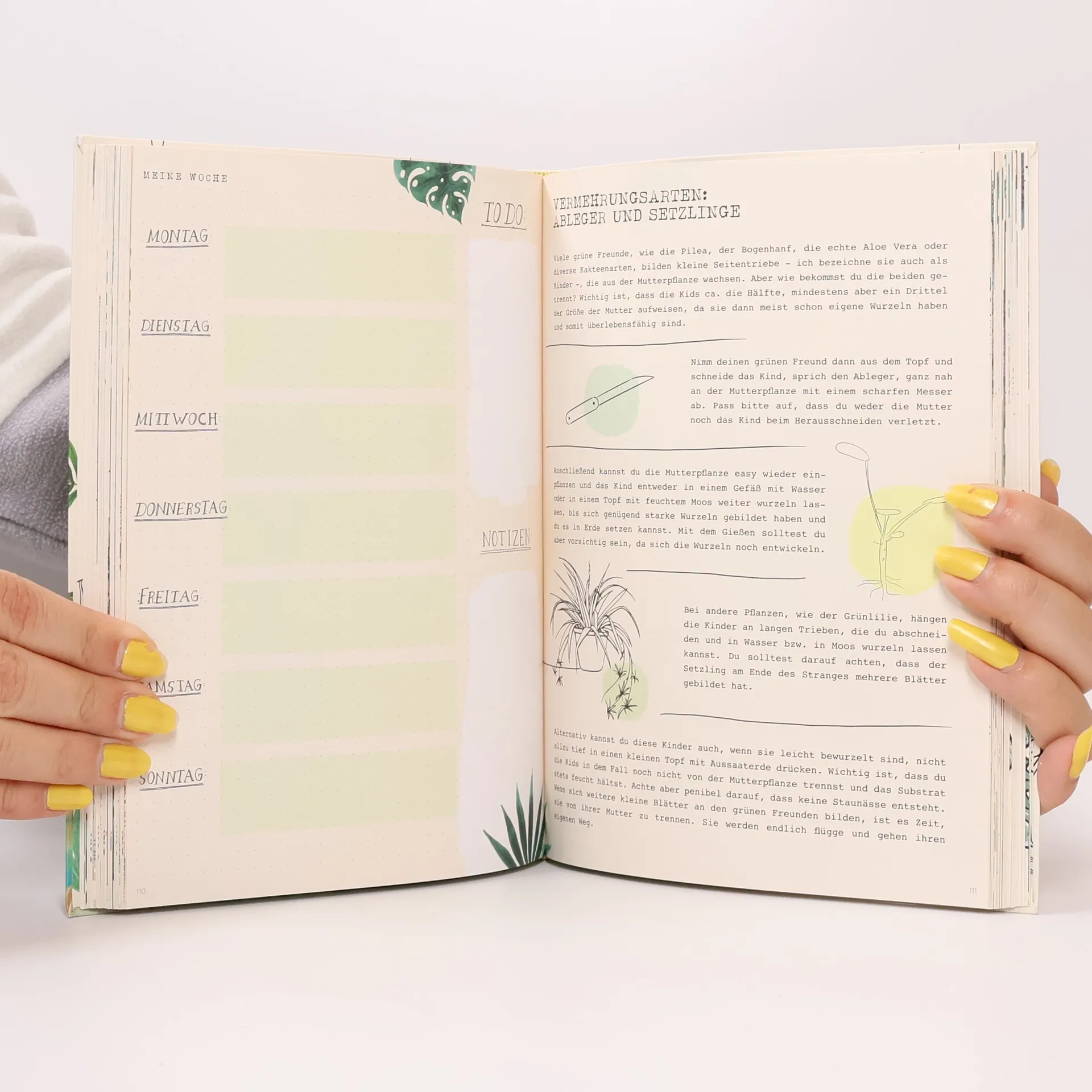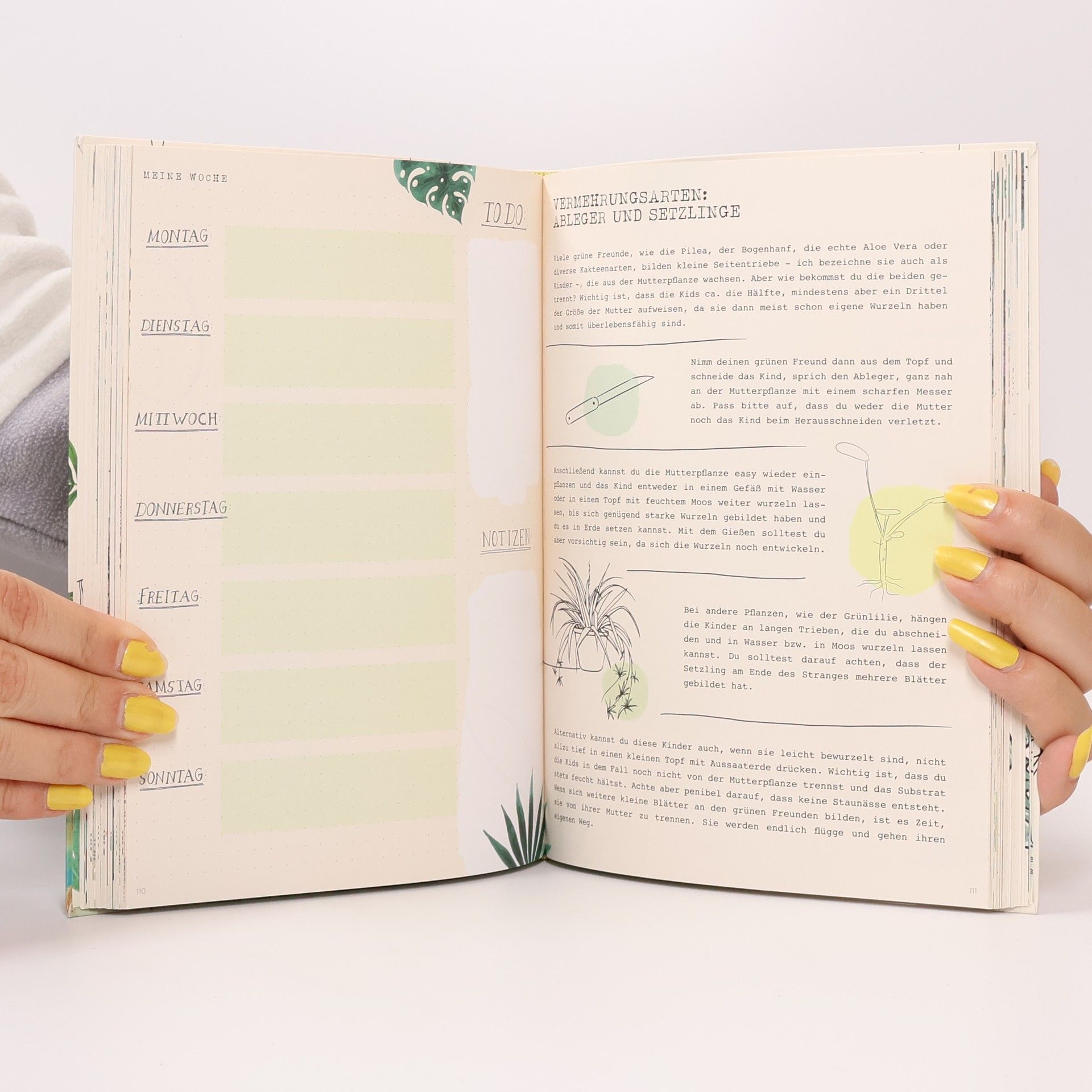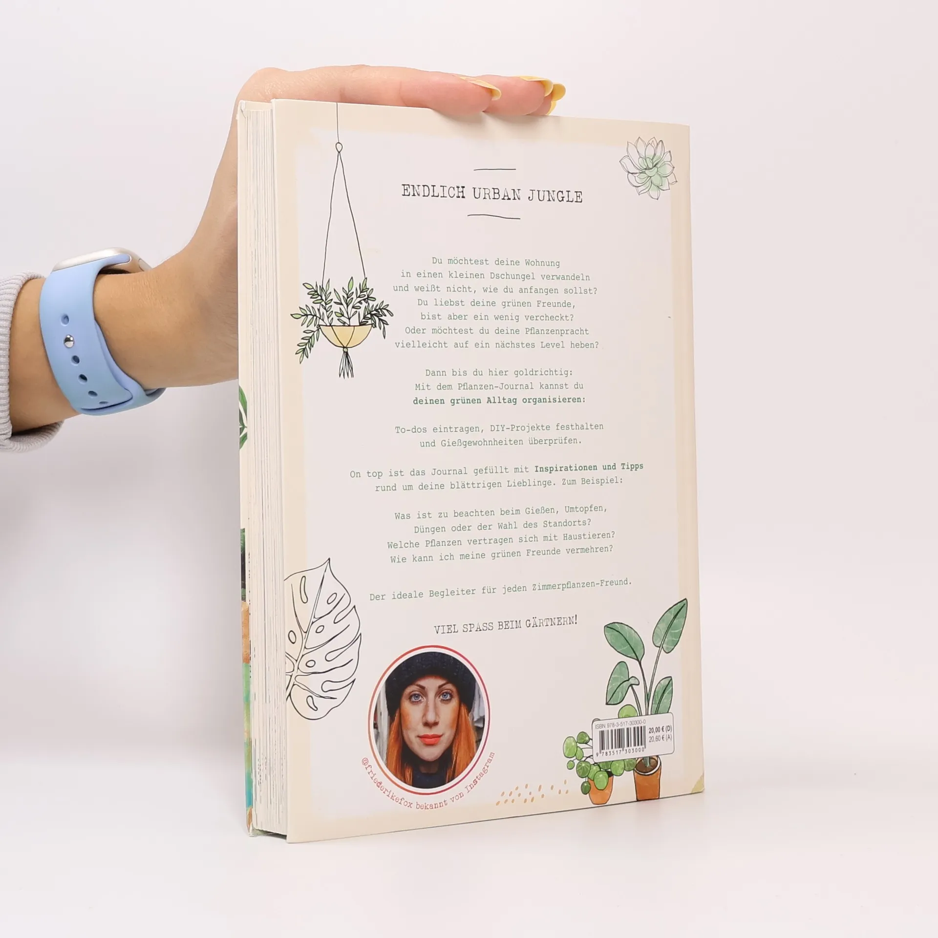 Endlich Urban Jungle Du möchtest deine Wohnung in einen kleinen Dschungel verwandeln und weißt nicht, wie du anfangen sollst? Du liebst deine grünen Freunde, bist aber ein wenig vercheckt? Oder möchtest du deine Pflanzenpracht vielleicht auf ein nächstes Level heben? Dann bist du hier goldrichtig: Mit dem Pflanzenjournal kannst du deinen grünen Alltag organisieren: To-dos eintragen, DIY-Projekte festhalten und Gießgewohnheiten überprüfen. On top ist das Journal gefüllt mit Inspirationen und Tipps rund um deine blättrigen Lieblinge. Zum Beispiel: Was ist zu beachten beim Gießen, Umtopfen, Düngen oder der Wahl des Standorts? Welche Pflanzen vertragen sich mit Haustieren? Wie kann ich meine grünen Freunde vermehren? Der ideale Begleiter für jeden Zimmerpflanzen-Freund. Viel Spaß beim Gärtnern! Ausstattung: Durchgehend illustriert