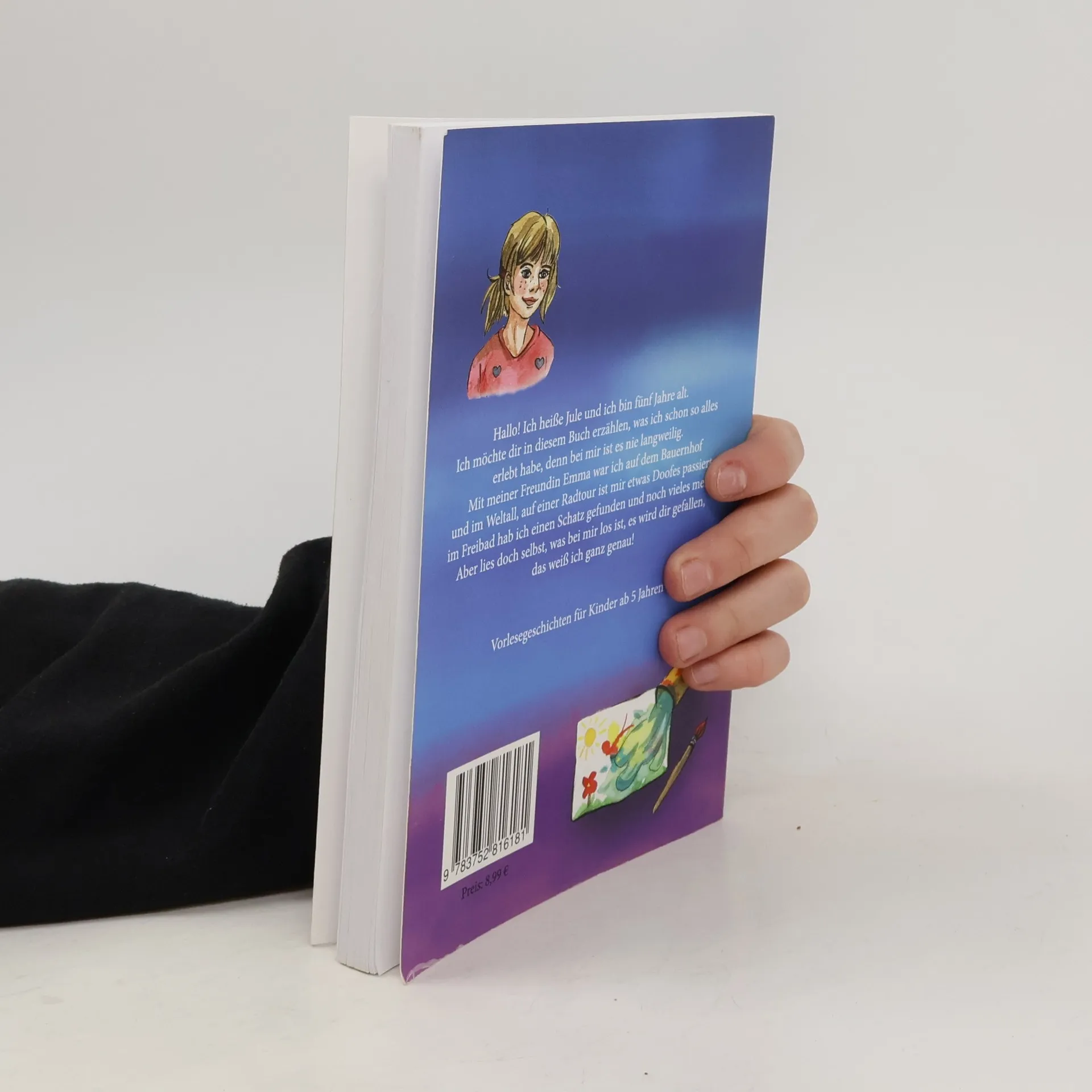 Jule - ein 5jähriges, forsches und liebenswertes Mädchen erzählt uns in diesem Buch, was sie schon so alles erlebt Schönes und Abenteuerliches, Spannendes und Lustiges. Da ist z.B. das erlebnisreiche Wochenende mit ihrer Freundin Emma auf dem Bauernhof, bei dem die Blumenkette den Schrecken heilt. Oder der Besuch mit Oma im Café, bei dem Jule Erfahrungen mit einem rosa und einem grünen Hut macht. Bei der verhängnisvollen Radtour mit ihren Eltern geht nicht immer alles gut. Den Flug mit Emma ins Weltall wird Jule nie vergessen, genau so wenig wie den Tag im Freibad, als sie eine tolle Entdeckung gemacht hat! Dann gibt es Tage, an denen einfach alles schief geht, an anderen merkt Jule, dass sie doch etwas erleben kann, auch wenn sie vorher alles doof fand. Und wenn dann am Ende das Lagerfeuer unter dem Sternenhimmel brennt, ist alles gut! Kurz - bei Jule ist immer etwas los. Jule weiß das noch genau - ein Kinderbuch mit 15 Vorlesegeschichten für kleine Leute, bei denen auch die Erwachsenen ihren Spaß haben werden.