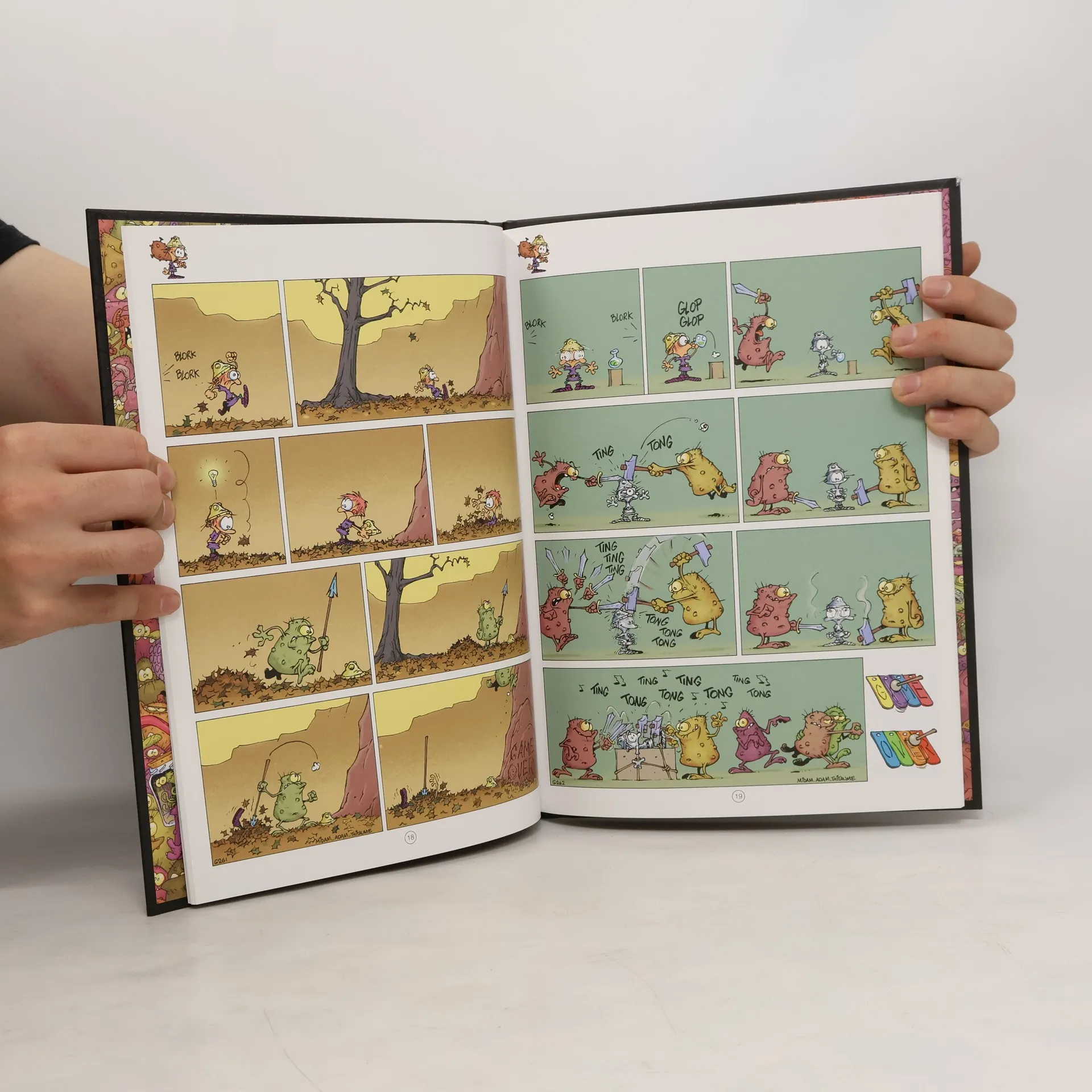 Décidé à exploiter jusqu'au bout le filon commercial que lui a ouvert ##Kid Paddle##, l'auteur propose ici une série dérivée ayant pour héros Petit Barbare, le personnage récurrent de tous les jeux vidéo préférés du Kid. Se succèdent donc des gags muets sans grande originalité, servis par un graphisme dépouillé, mis en couleurs dans une palette de tons acidulés. [SDM].